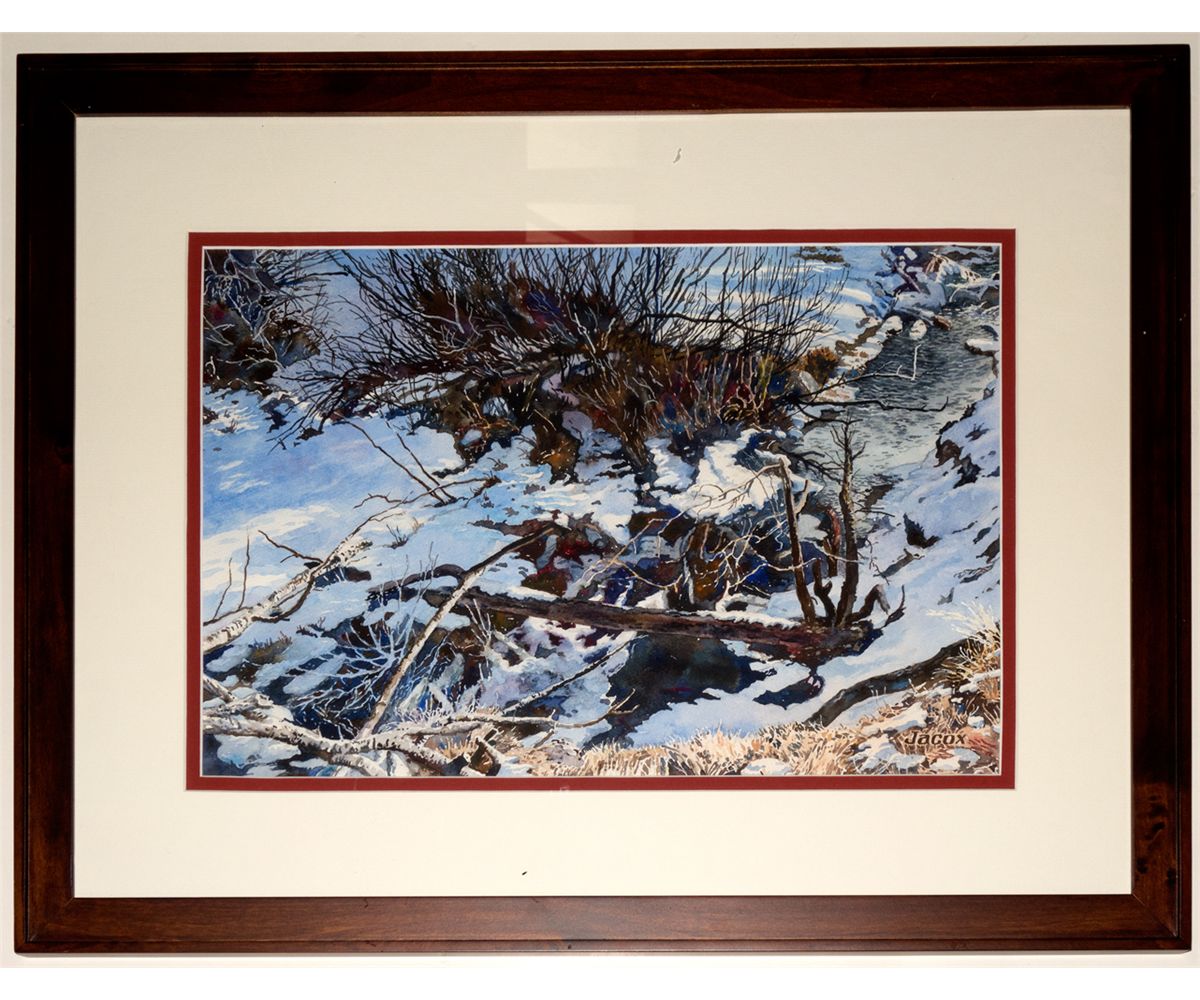 18x24" by Larry Jacox. Gorgeous dark wood frame with double matting.