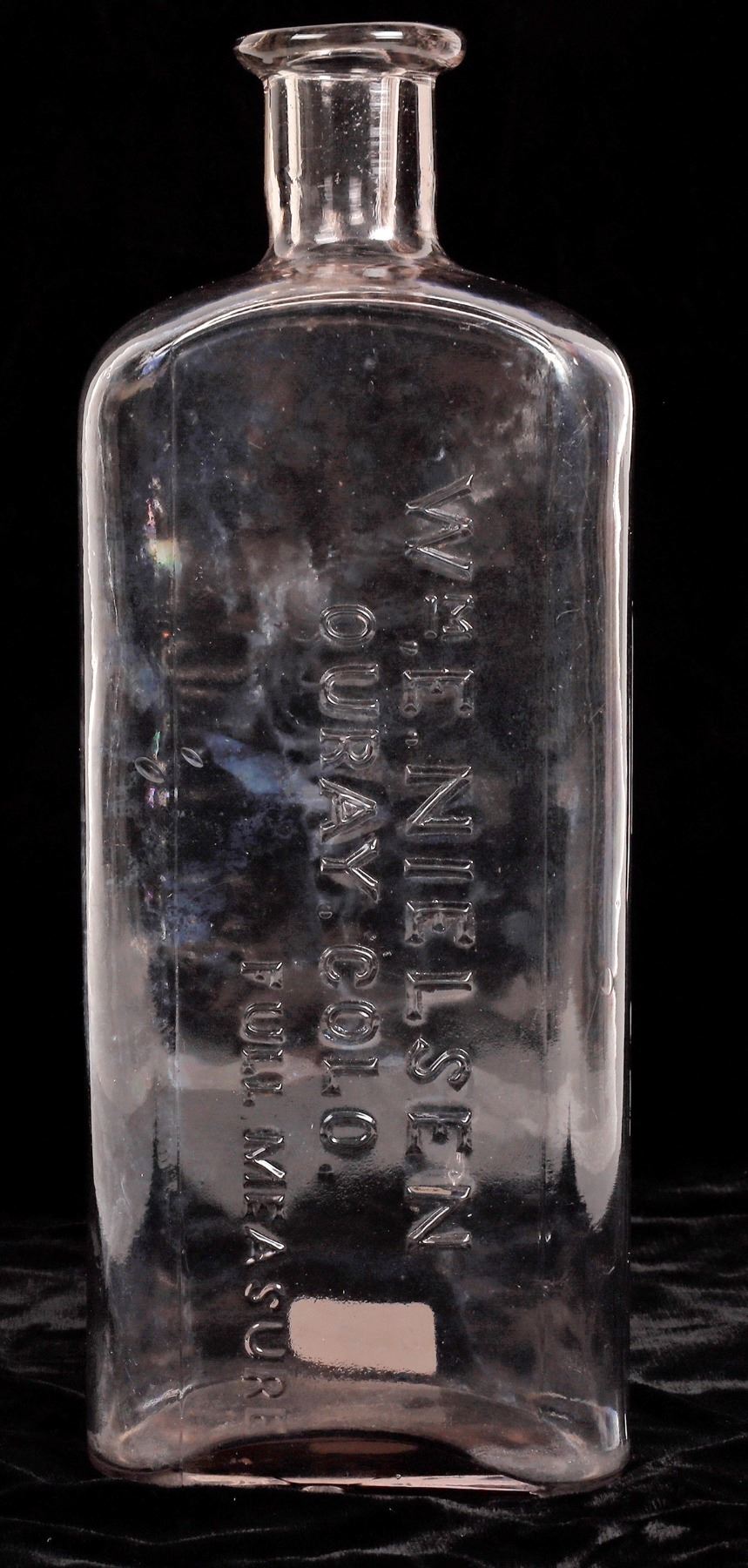 Embossed very rare 32oz Wm E Nielsen large druggist bottle. 10". No apparent chips or cracks. Ourey Colorado