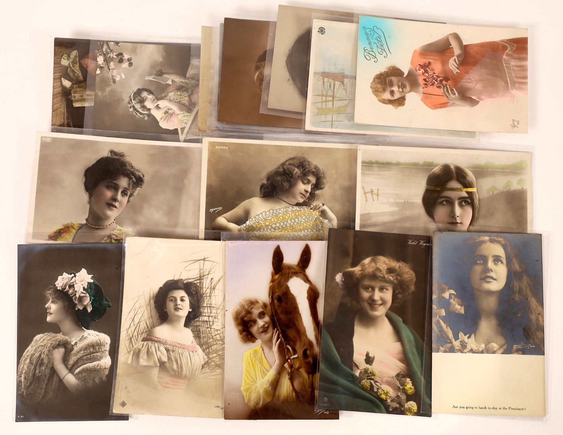 A group of 16 beautifully photographed postcards featuring women from the early 20th century. This is a real Victorian sample of womanhood back in the day. Some of the cards are used, some are blank. Please see photos for more detail and condition.