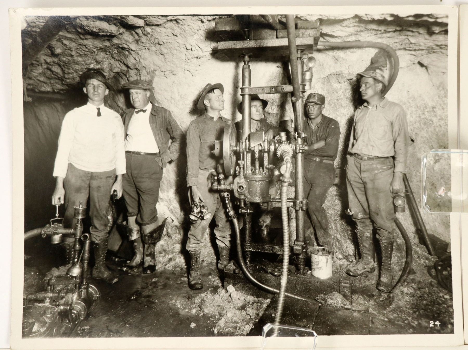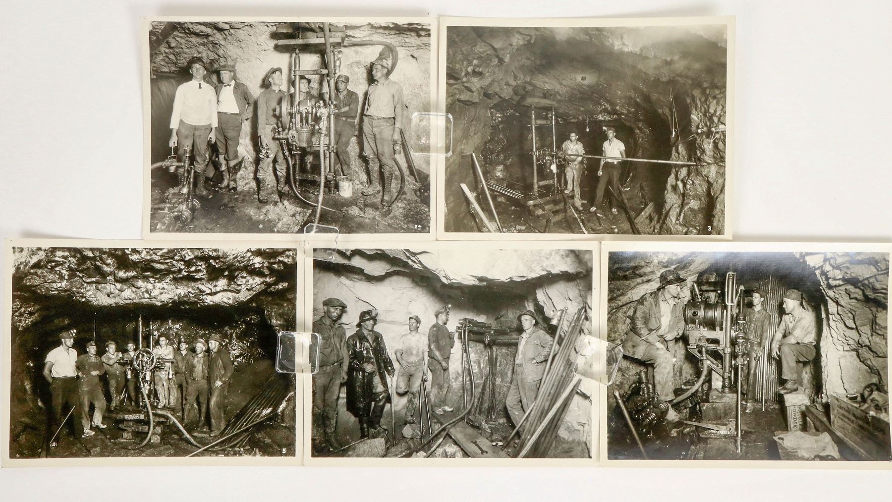 5x 6.5x8.5" b/w photos of underground miners. On the back of one is written in pencil, Wonder Mine, Wonder Nevada and on another Tom Barrett. We are unable to verify if the location is actually in Wonder or identify Tom Barrett.