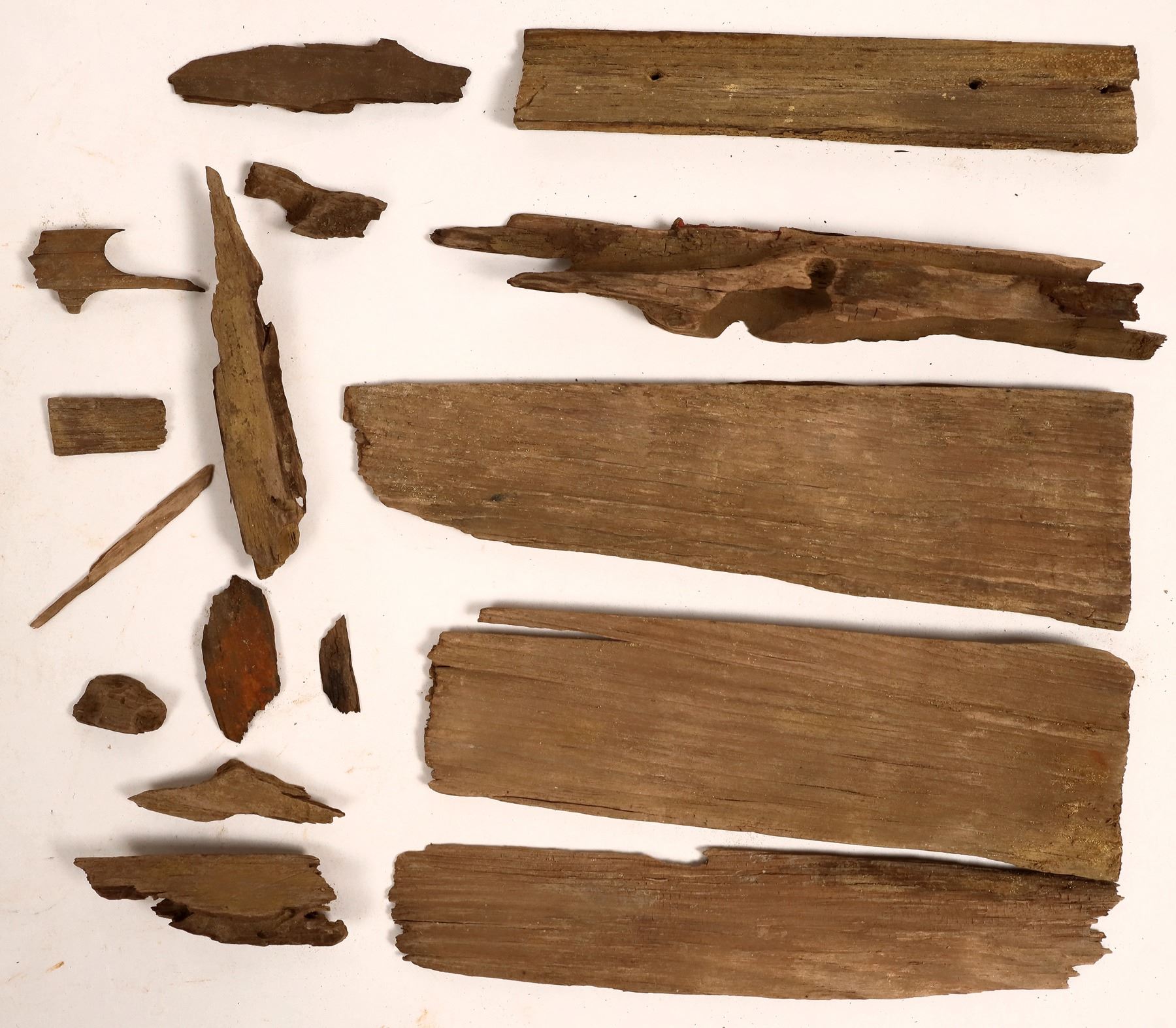 Several wood treasure box parts, possibly made by Sather and Church, San Francisco. Largest piece 8x2 3/8".