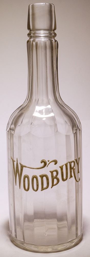 "The Old Kentucky Distillery operated from circa 1880 until it was shut down due to the United States ban on alcohol in 1919. Prior to 1895, it operated under the name Mayflower Distillery Co. In 1892, it was purchased by Dick Meschendorf who changed the name to Old Kentucky Distillery and produced different brands of whiskey including "Cherokee Springs", "Dew Drops", "Fountain Spring", "Goodwill", "Kentucky Dew", "Moon Light", "Normandy", "O K D", "Old Cherokee Spring", "Old Jefferson County", "Old Kentucky", "Old Oak Ridge", "Old Watermill", "Royal Velvet", and "Woodbury." from http://ead.lib.virginia.edu. Clear fifth with white raised enamel WOODBURY. No visible chips or cracks, very nice condition. ALL SALES FINAL Date: Location: HWAC # 54108