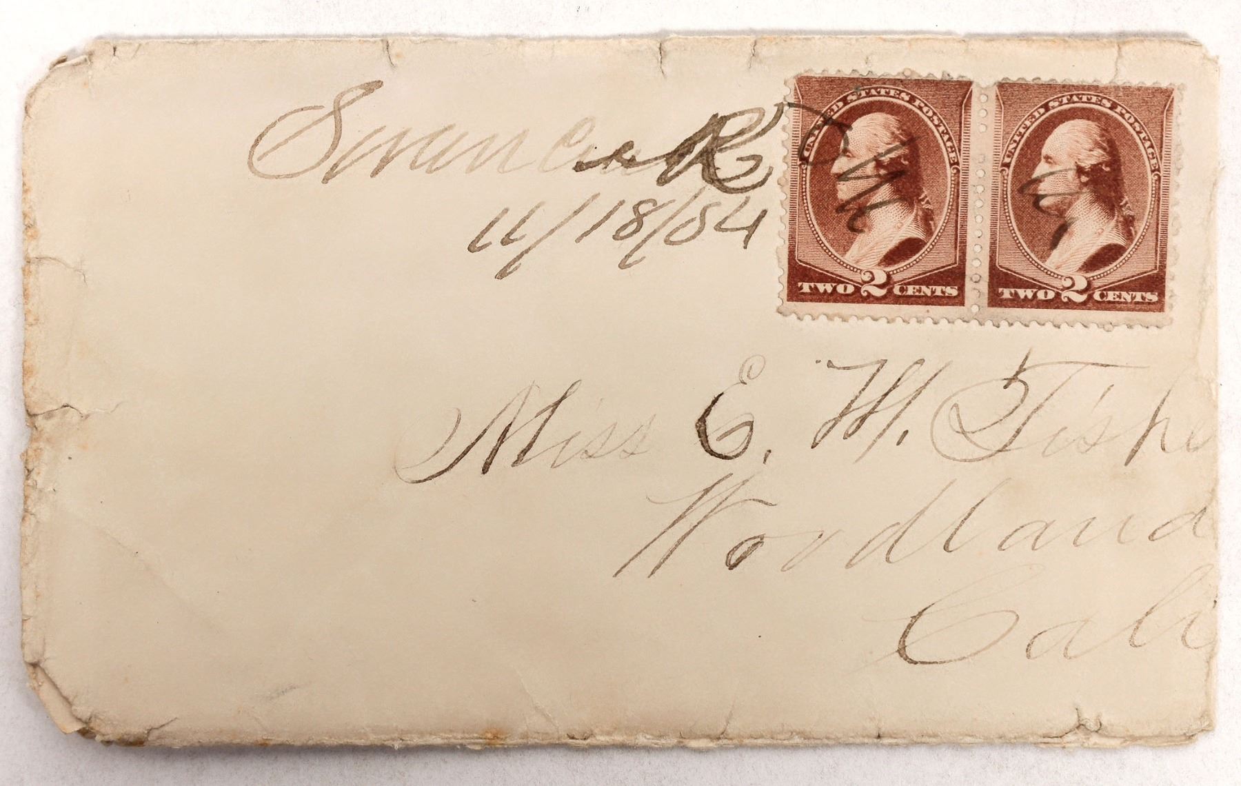Cover from Swan Creek to Woodland, California. It's postmarked November 20, 1884 and has two Washington two-cent stamps affixed. Please see photos for more details.