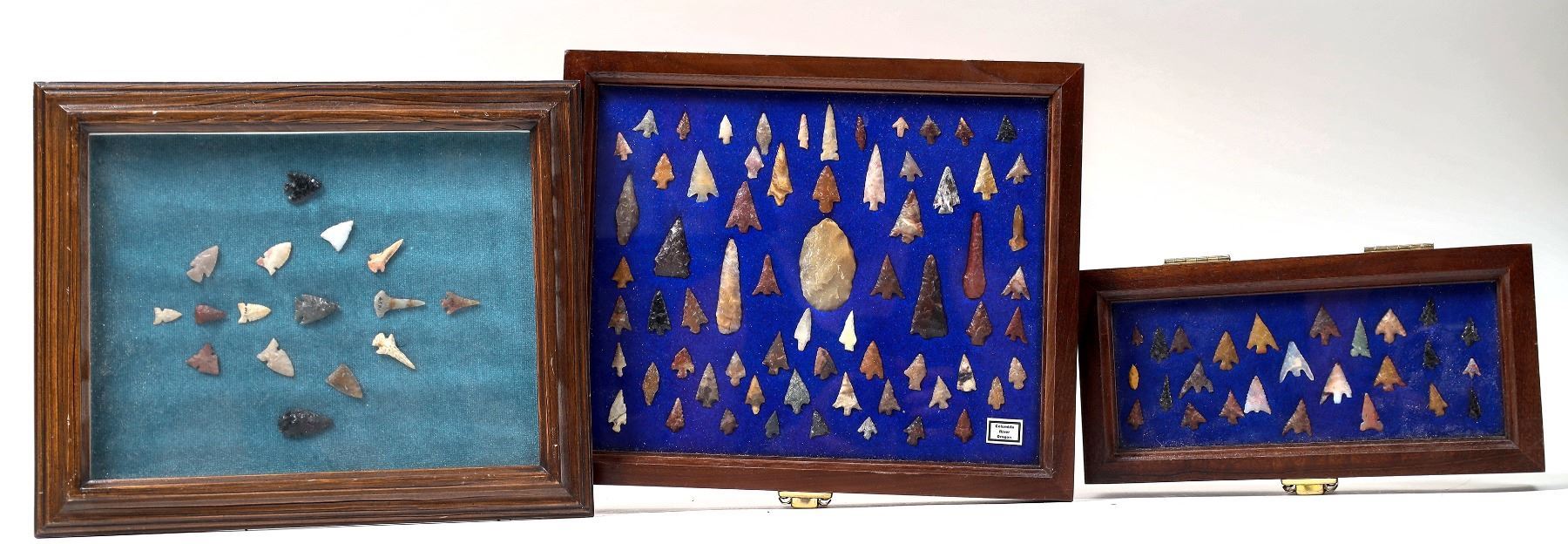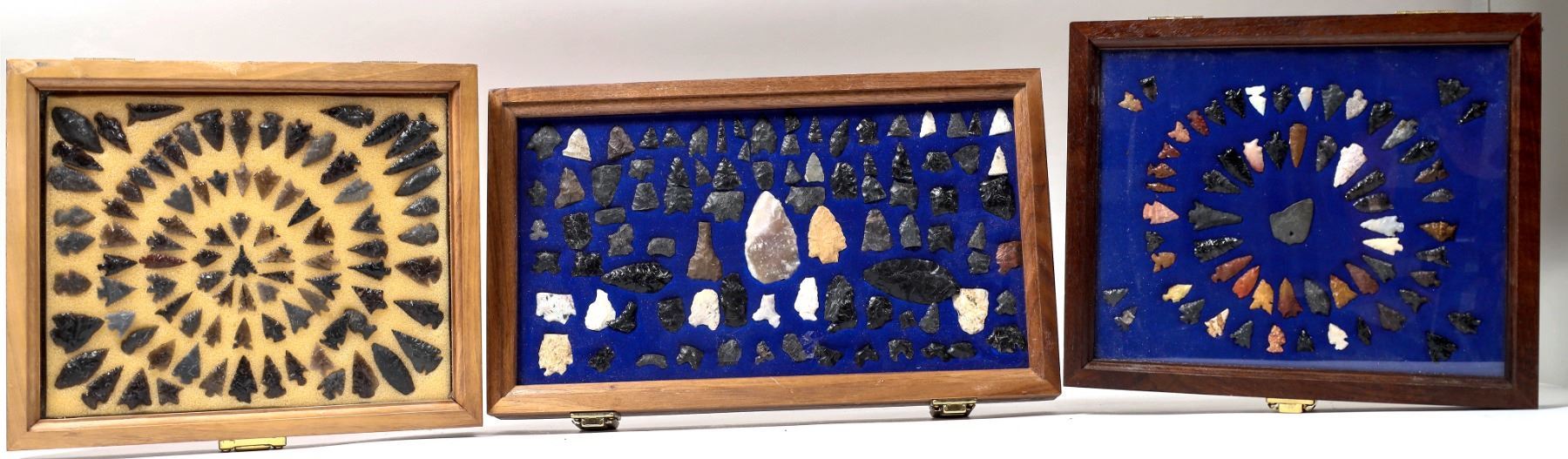 Magnificent Assortment of Woodland and Mississippian Cultures Types; Agee and Northwestern Gem Point. This lot contains six boxes of Great Basin projectile points, a total of over 340 points. One box is of Modoc, Ca. points with spectacular colors; Obsidian points from Nevada along with points from East Texas, Missouri, and Cahokia types; Columbia River, Oregon; one box of Nevada Obsidian with spectacular coloration; Washoe County, Nevada; open obsidian. Provenance: Gary Bracken Collection