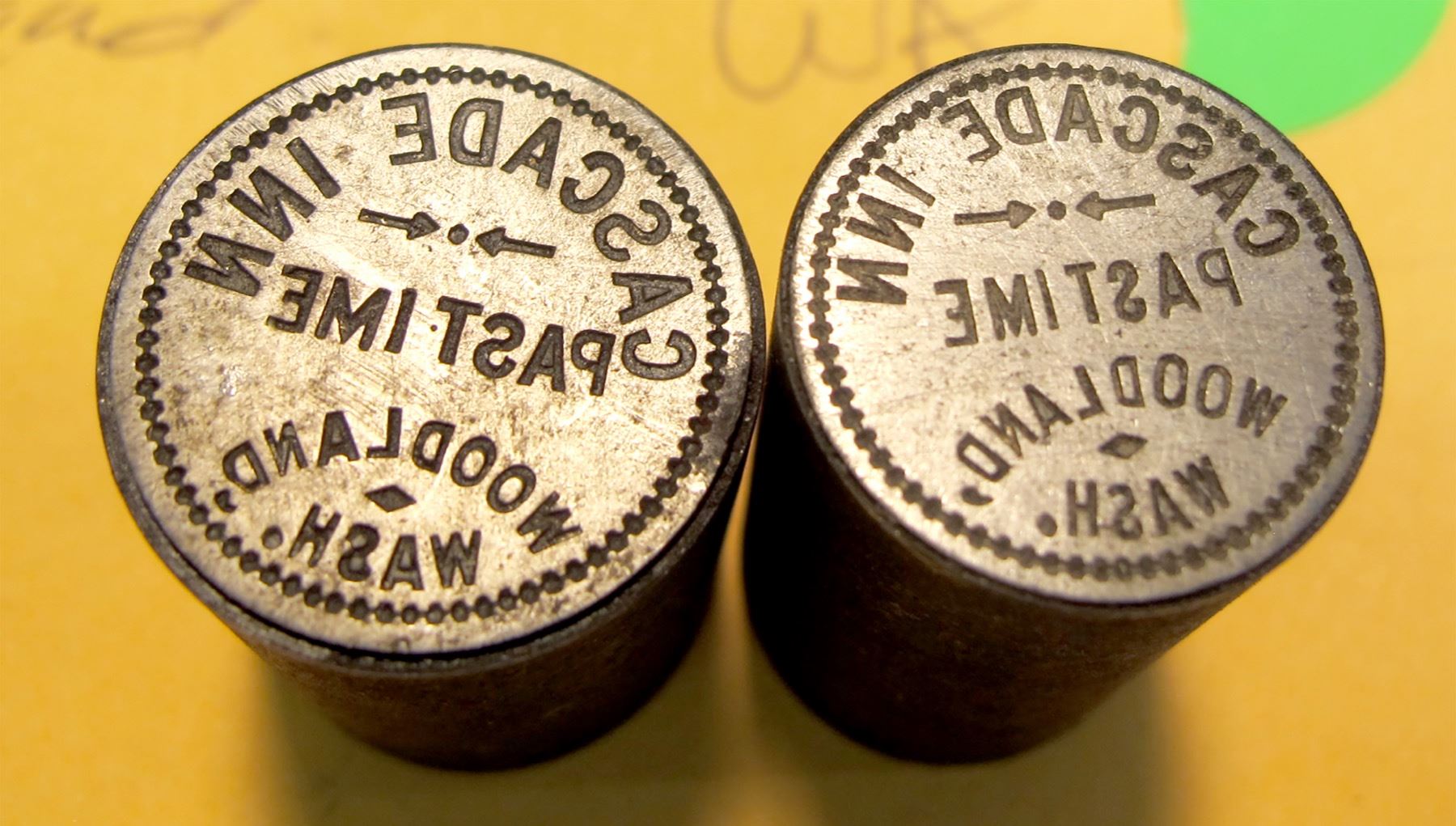 2 token dies self identified from Woodland, WA. 21mm and 24mm Cascade Inn. Northwest Territorial Mint Historical Token Die Collection. State: Washington City: Woodland Date: c, 1903-1950 HWAC# 85010