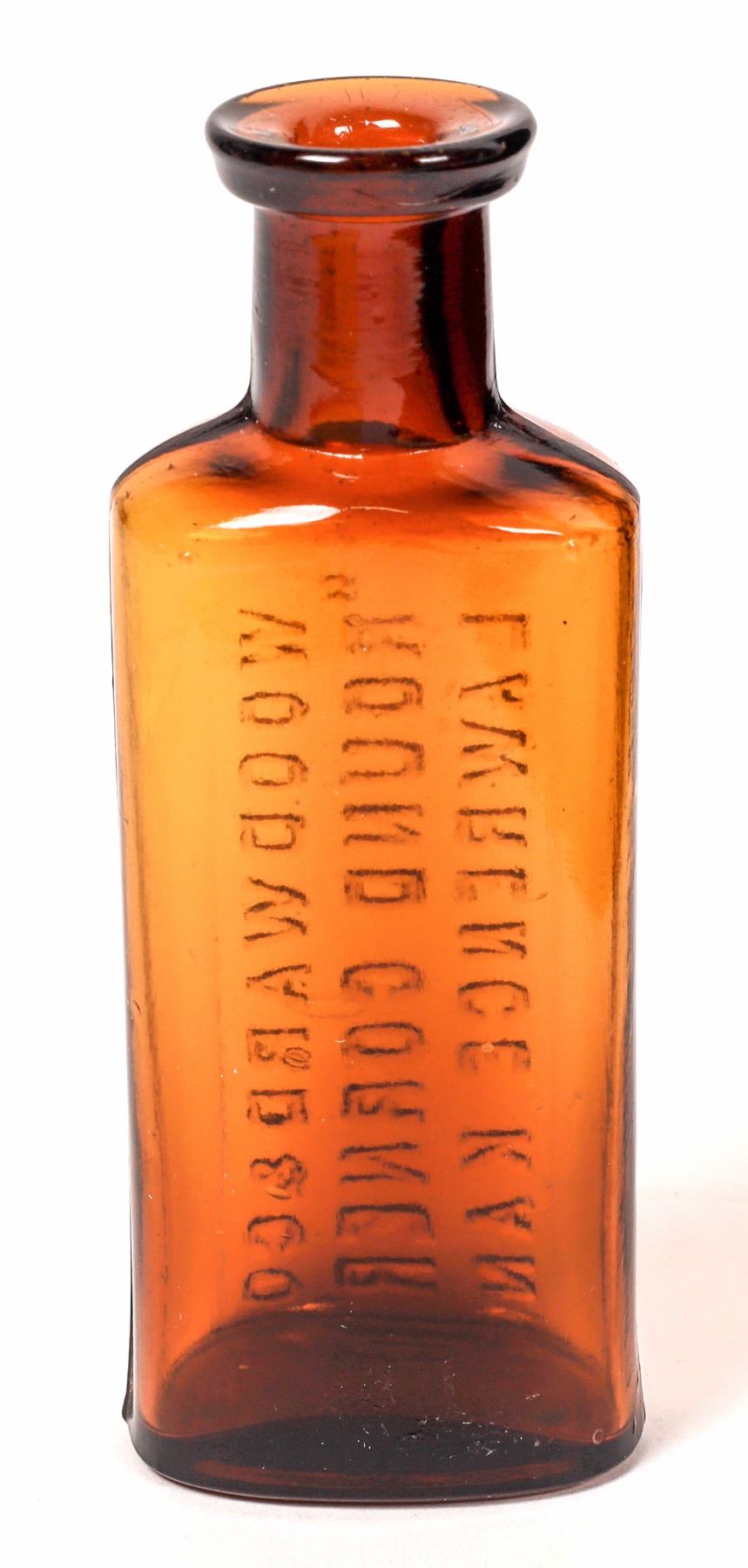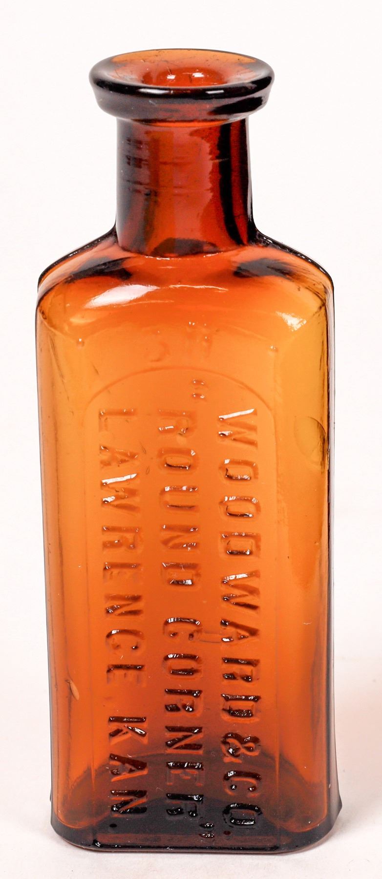 Amber embossed Woodward & Co. medicine bottle 4.25". No apparent chips or cracks.