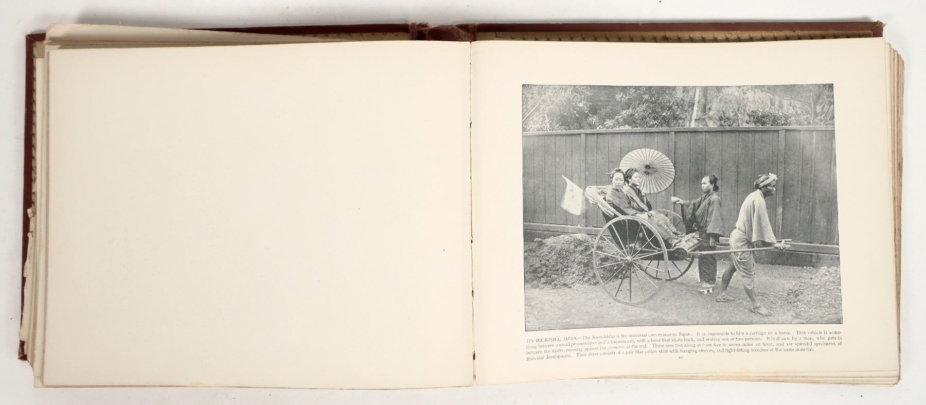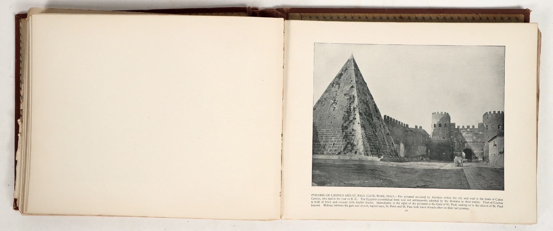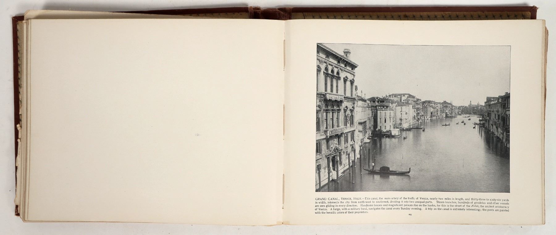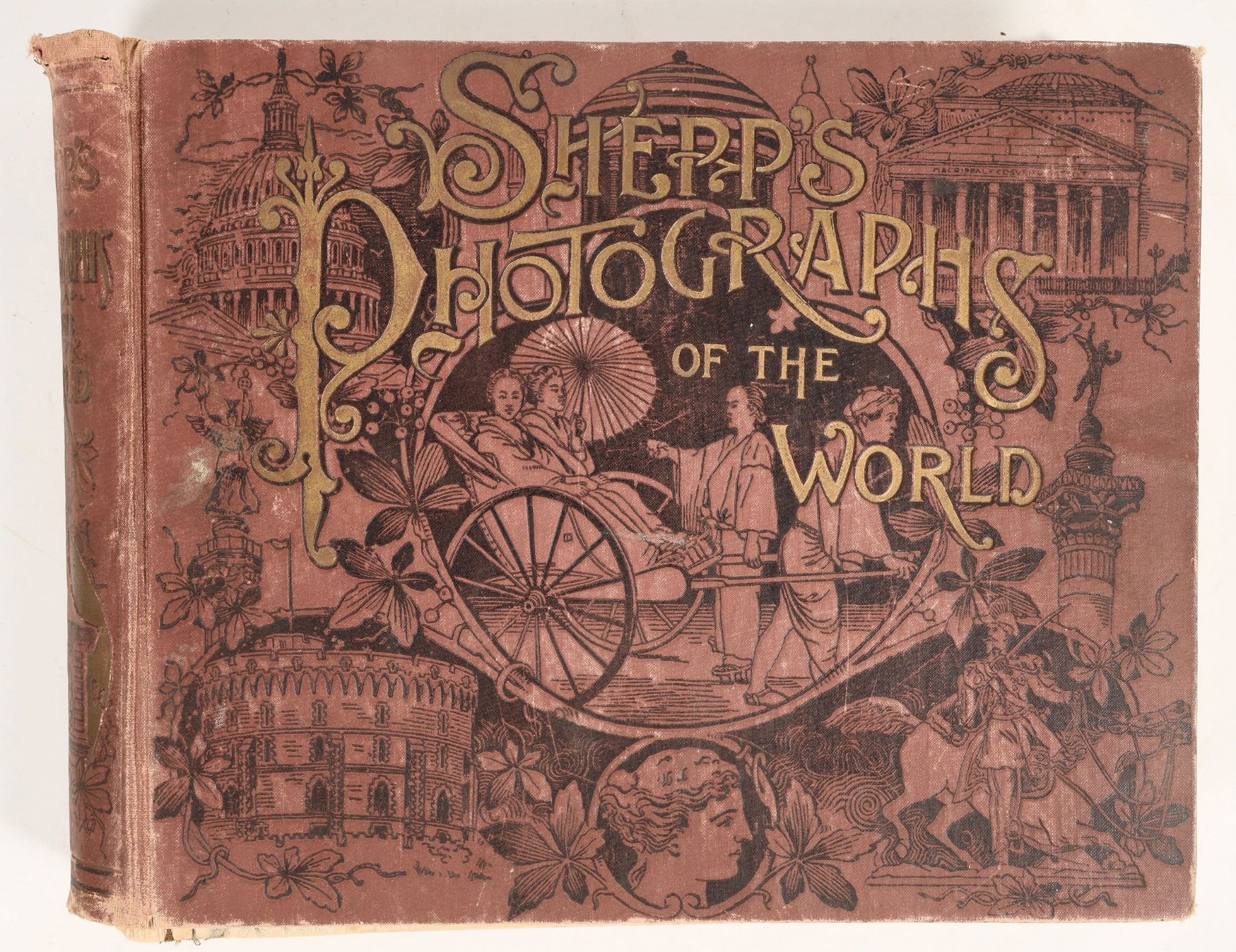 A copy of "Shepp's Photographs of the World", curated by James W. Shepp and Daniel B. Shepp. Published in 1892, this book contains numerous photos from "Europe, Asia, Africa, Australia, North America, South America, and the Pacific Islands". It features images of numerous natural views as well as modern buildings and ruins of antiquity. Excellent content, but poor binding; the spine is entirely detached, and definitely needs some restoration.