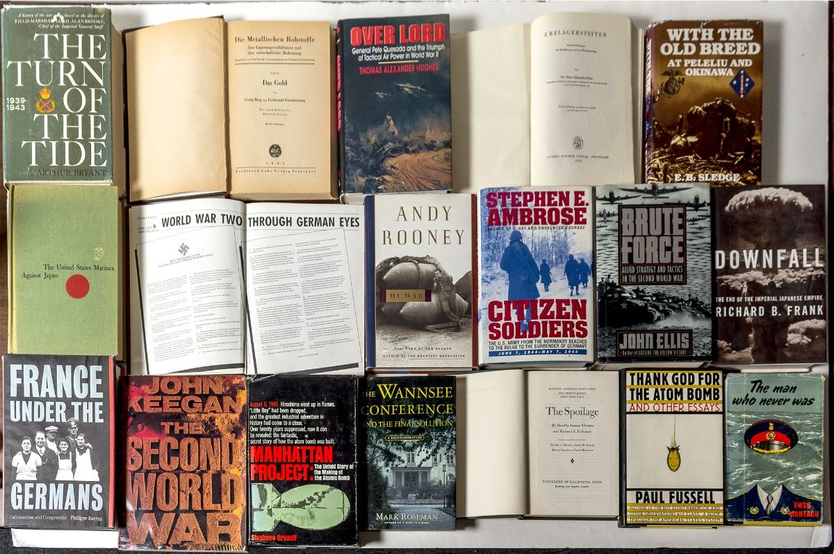 True library with 79 volumes of books on World War II including two complete sets of Time Life books, "World War II" and "The Third Reich" each with approximately 25 volumes per series. The rest are smaller, individual books that include titles such as, "Manhattan Project" by Stephane Goueff, w/ dust jacket, First Edition, "The Turn of the Tide" by Arthur Bryant, w/ dust jacket, First Edition, "The Good War" by Studs Terkel, w/ dust jacket, First Edition, "Brute Force" by John Ellis, w/ dust jacket, First American Edition, "Citizen Soldiers" by Stephen E. Ambrose, w/ dust jacket, and more. State: United States City: Date: FHWAC#: 40009