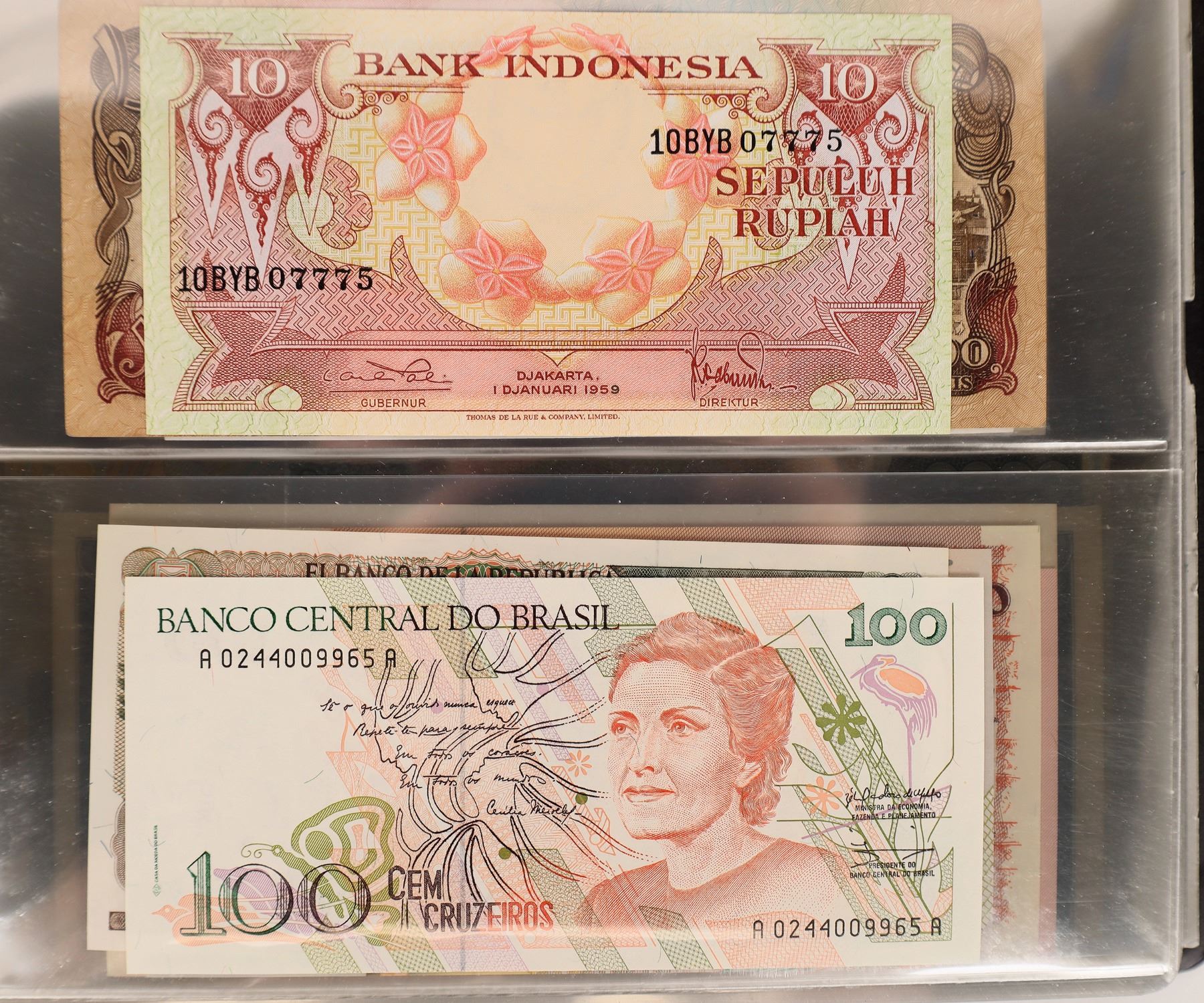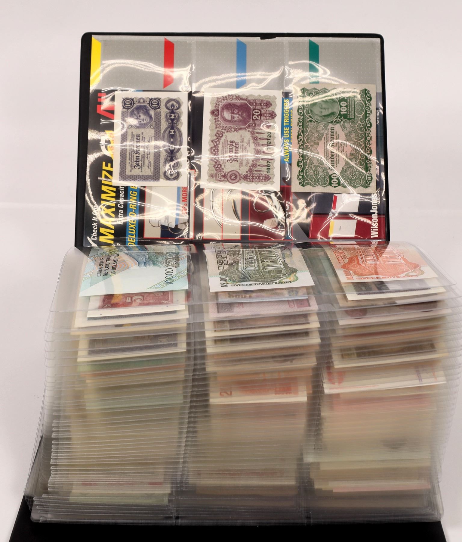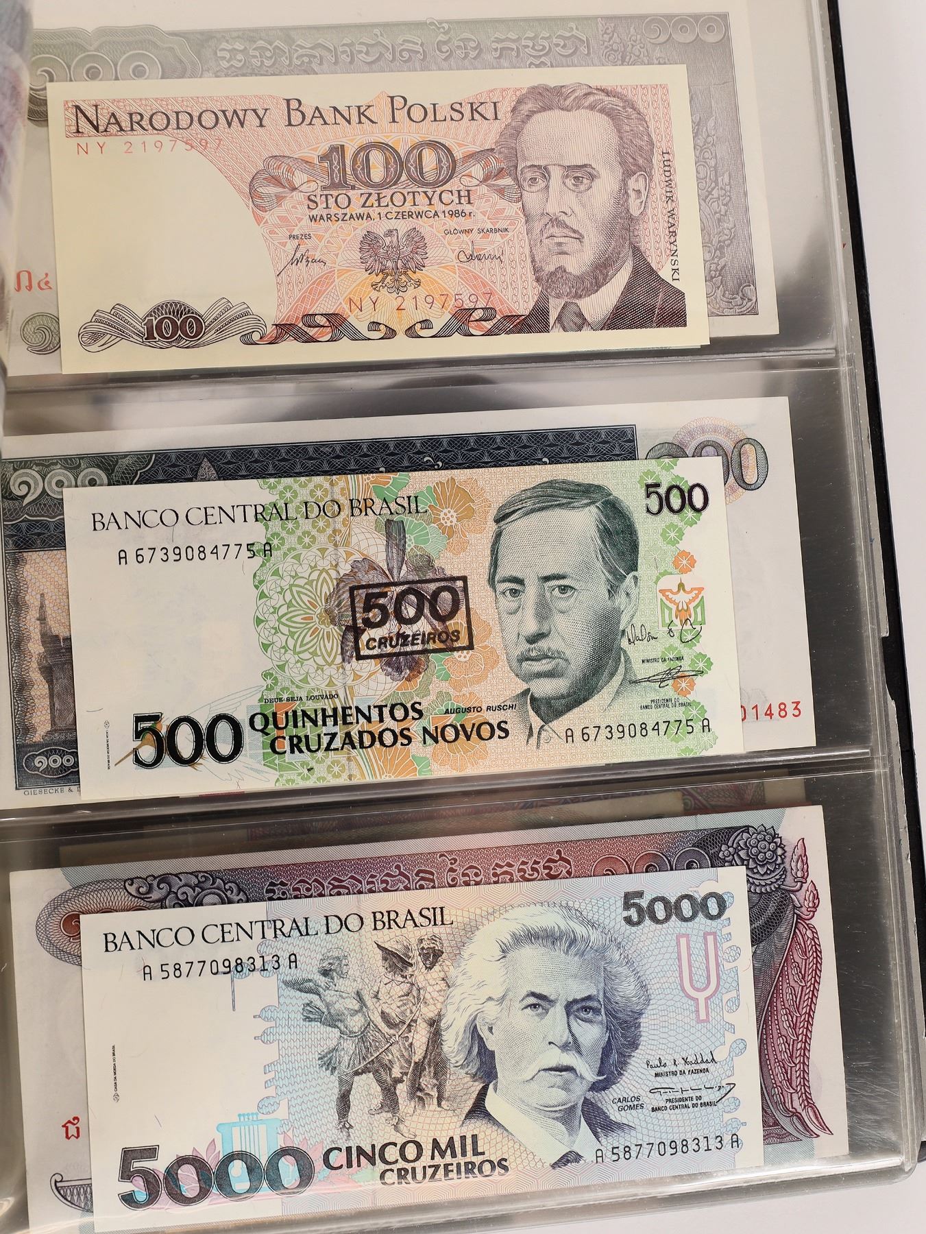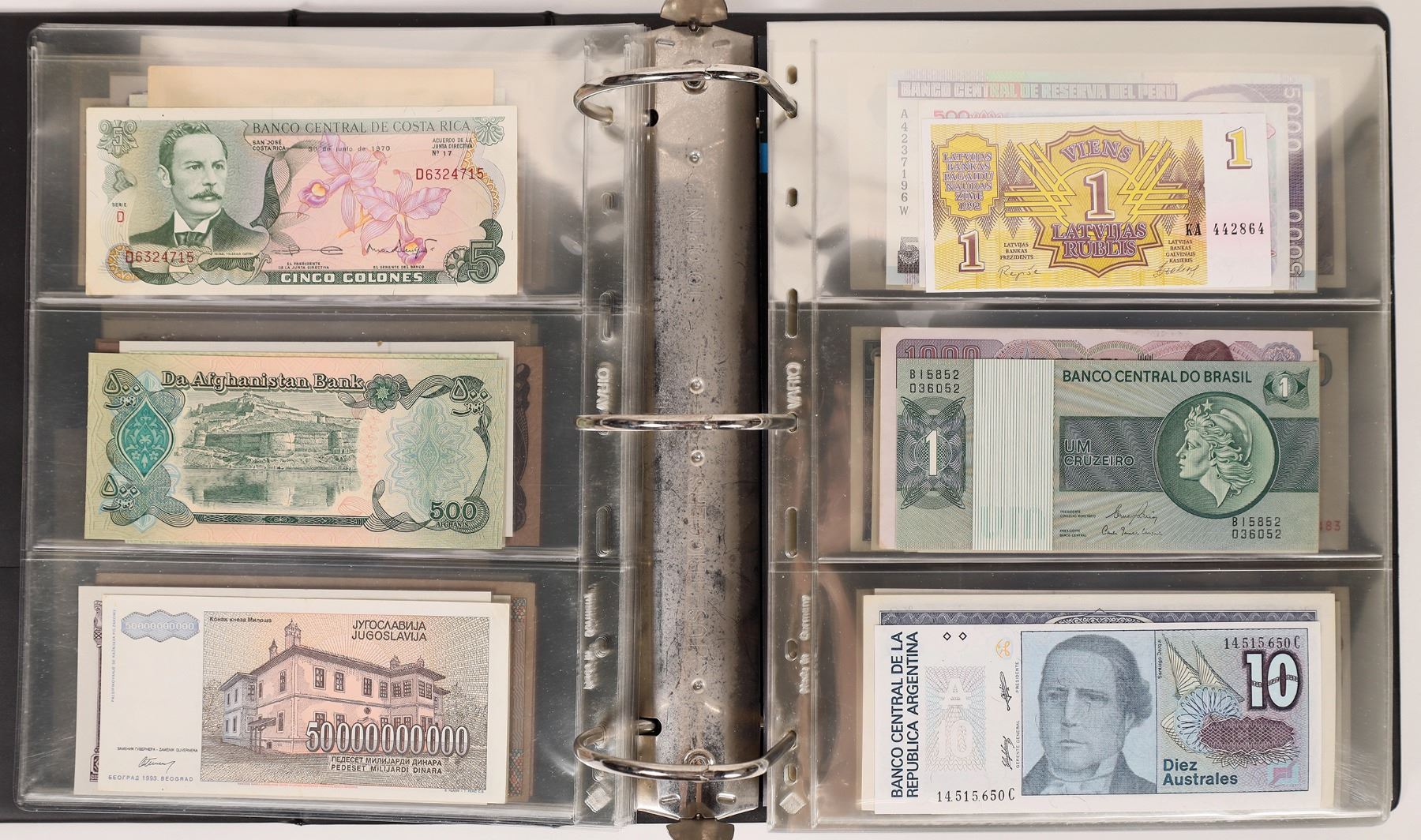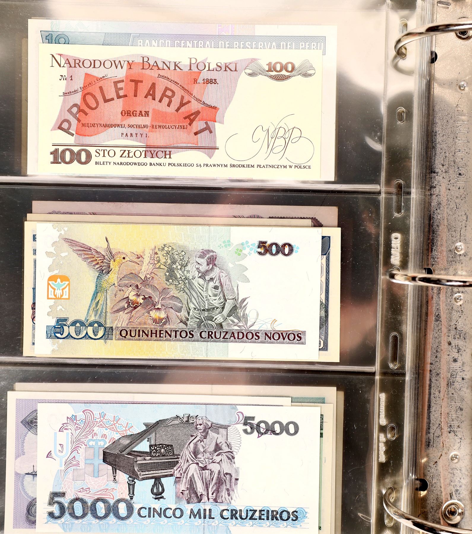 Binder of over 230 crisp uncirculated bank notes from countries around the world. Colorful, exotic, educational. Salvatore Falcone Collection