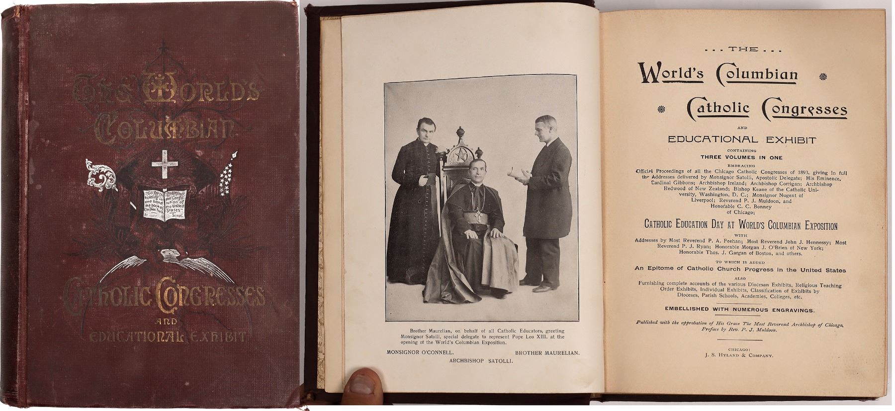 Hardcover, 1893. Three volumes in 1. Official proceedings of Chicago Catholic Congress of 1893 including spoken addresses. 503pp with illustrations.