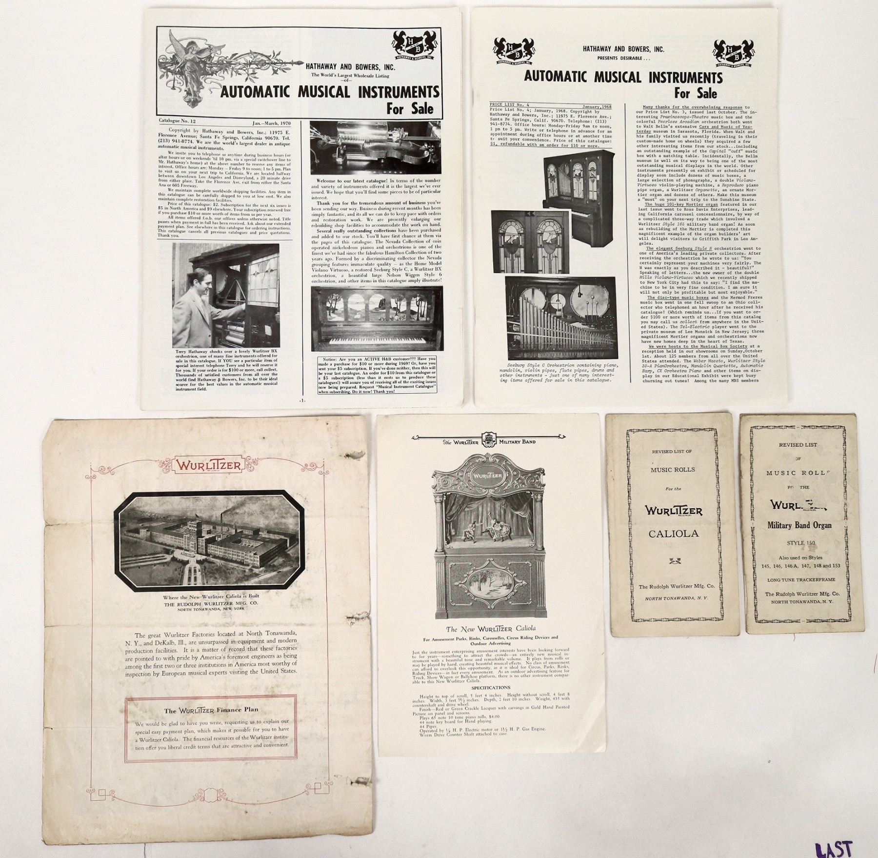 1968 and 1970 Hathaway and Bowers automatic musical instruments catalogs and Wurlitzer music roll music list x3.