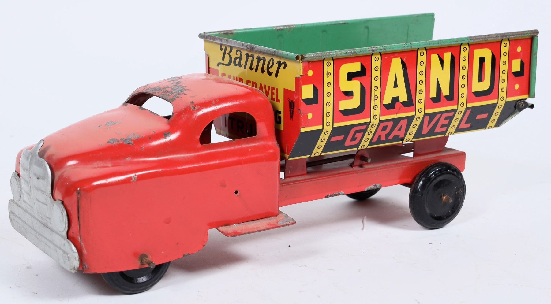 1. Banner Sand & Gravel excavating Truck, "sand" on both sides, 13" long, fine plus.