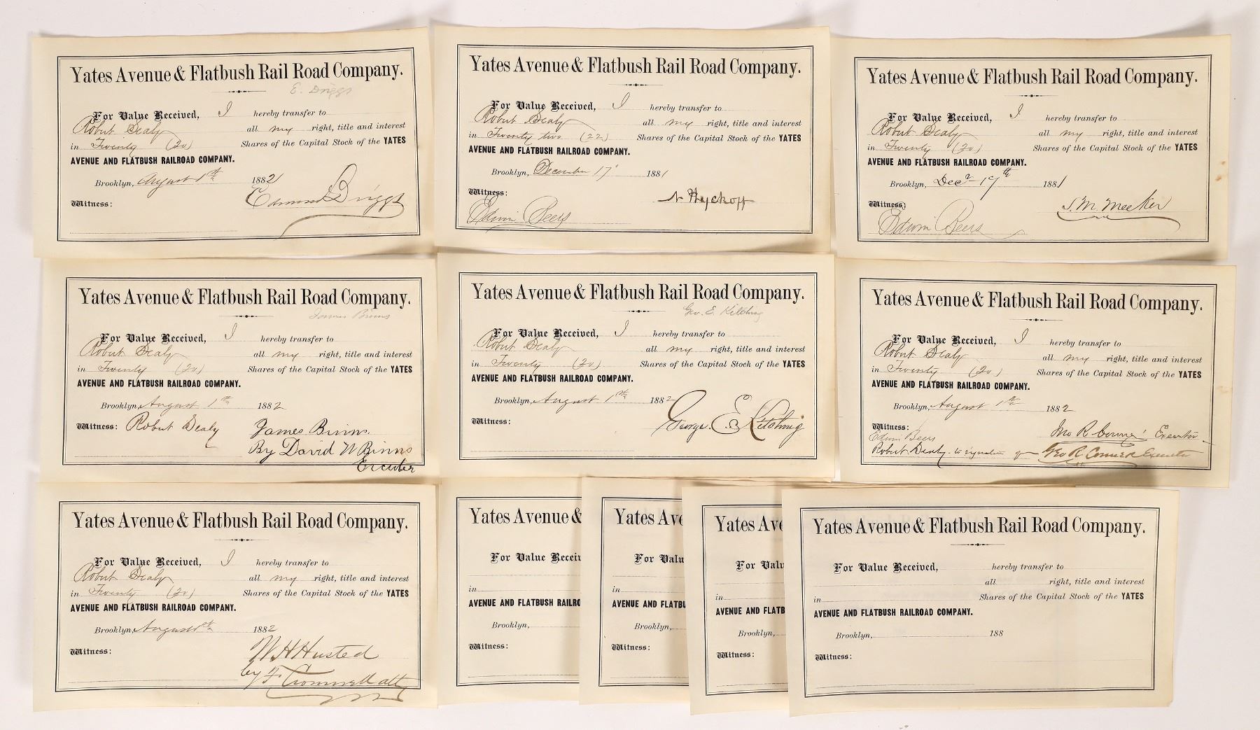 4 u/i and 7 i/u 1881-82 Yates Avenue & Flatbush Rail Road stocks. New York Ken Prag Collection
