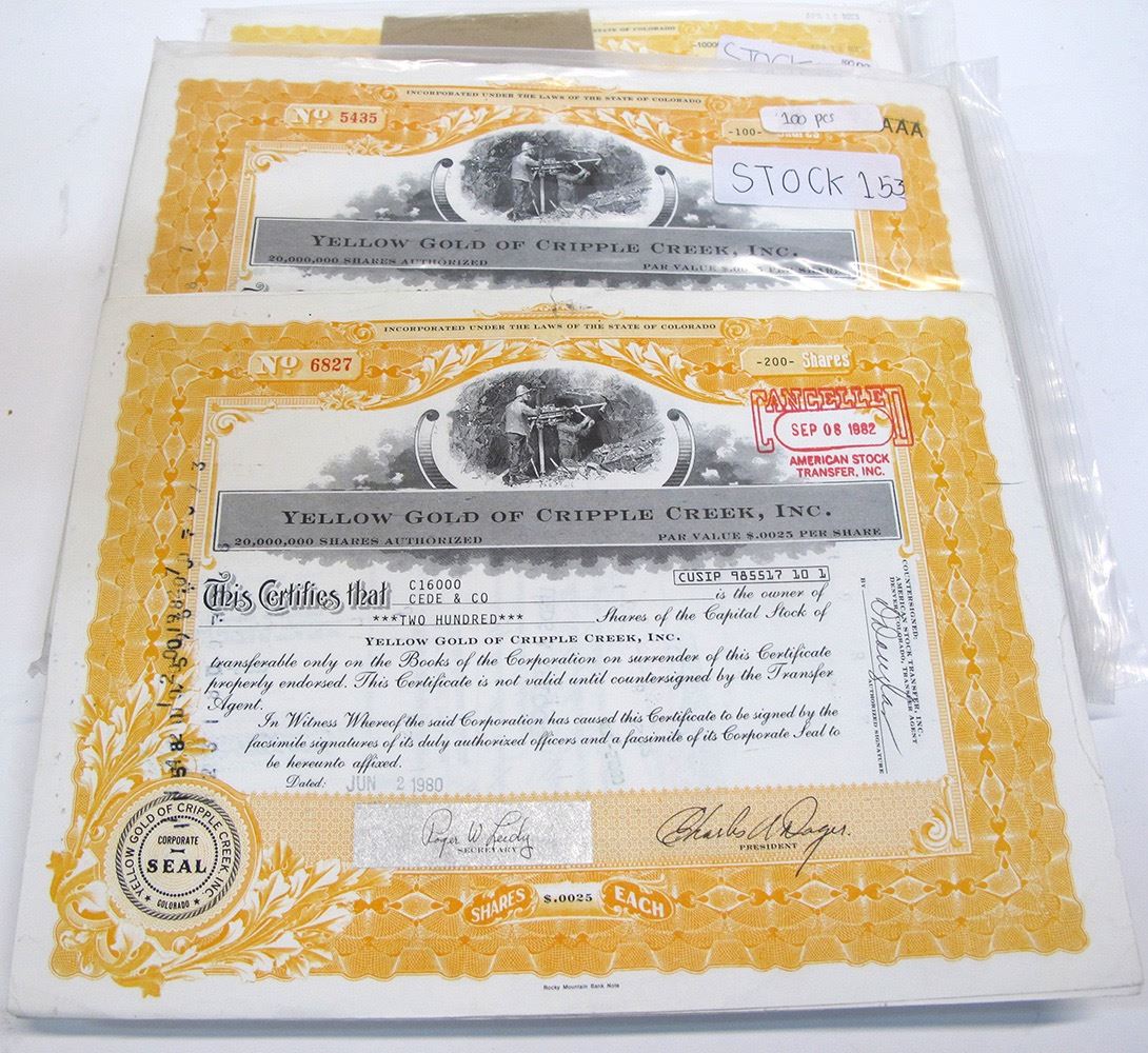 300 issued stocks 1981-1982. Date: Location: Cripple Creek, Colorado HWAC # 54924