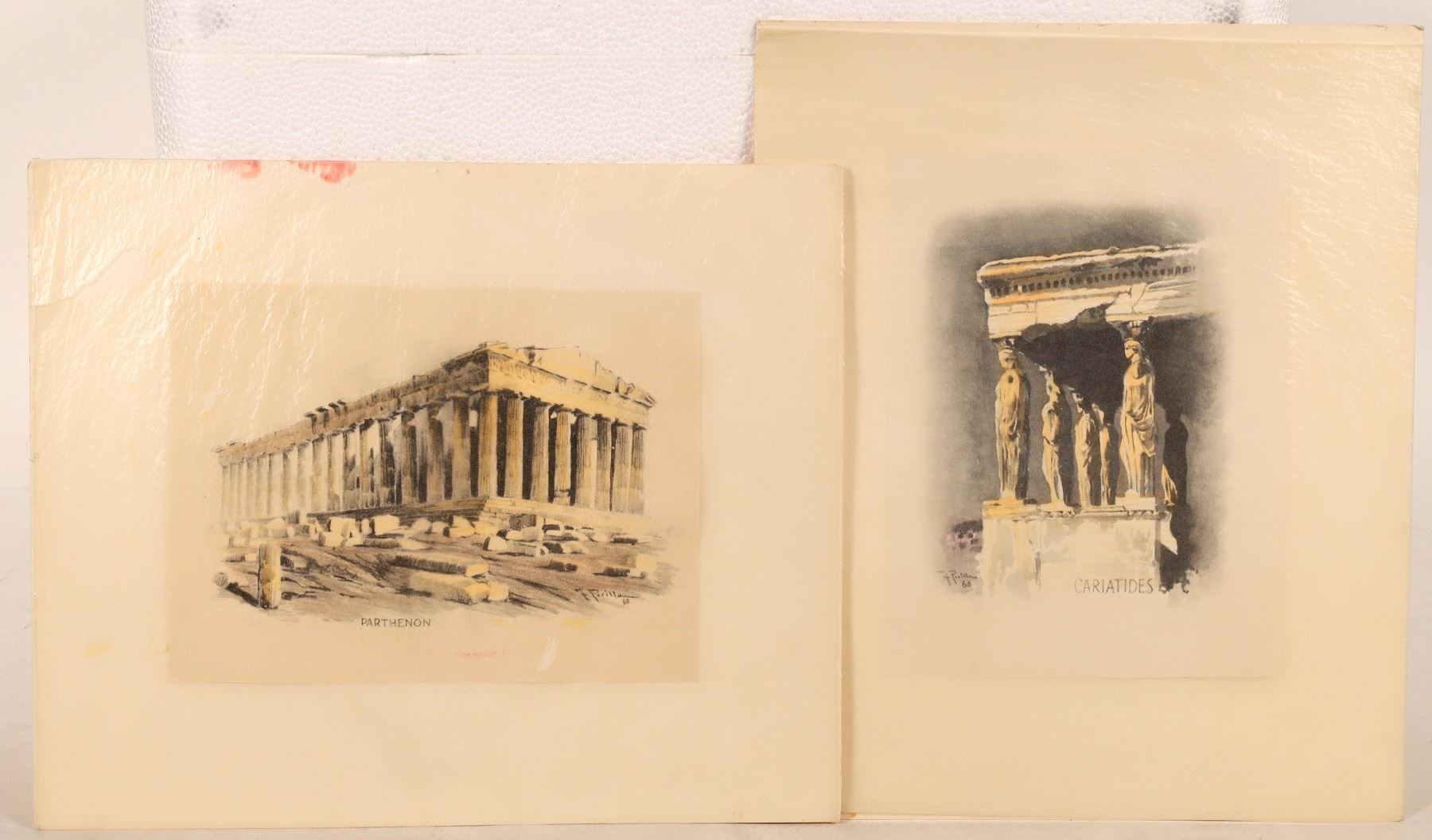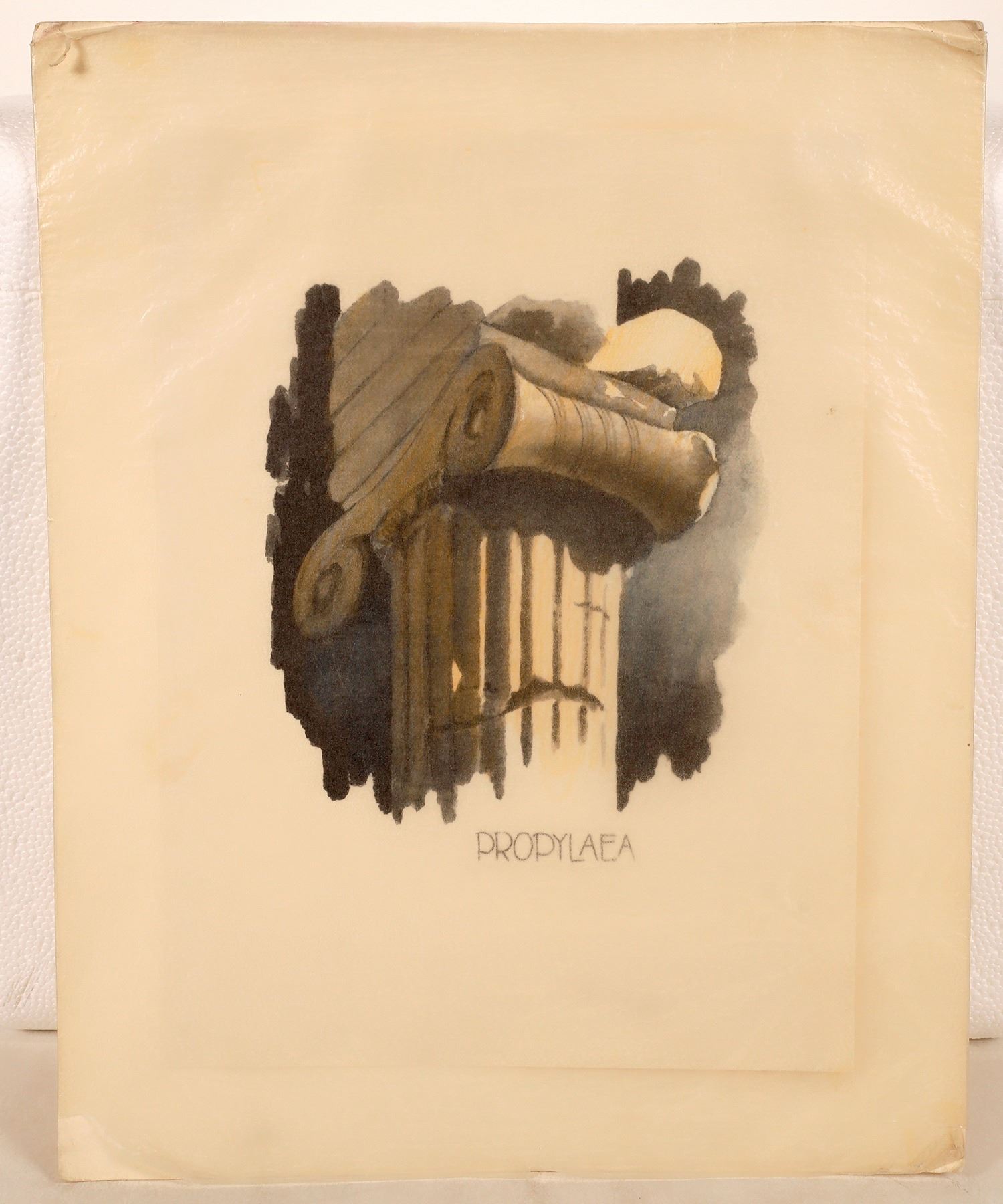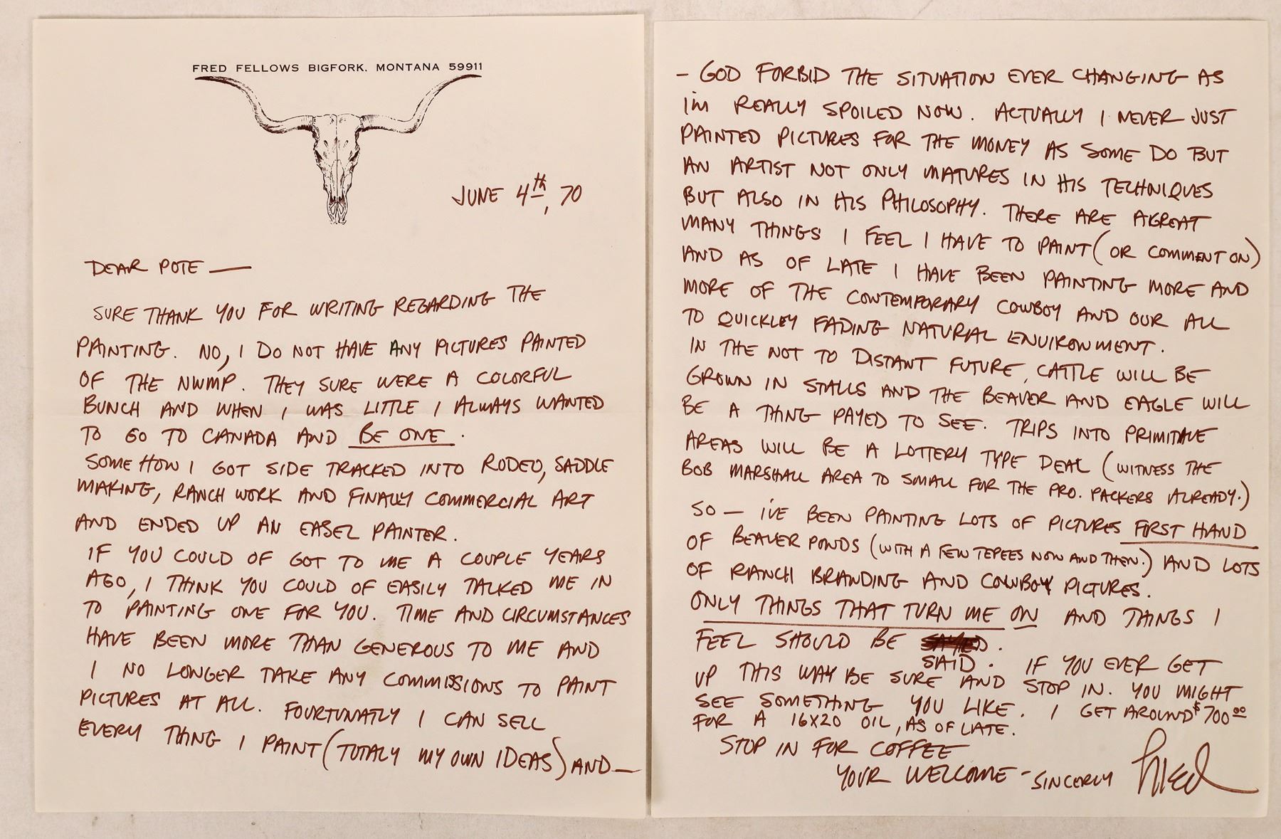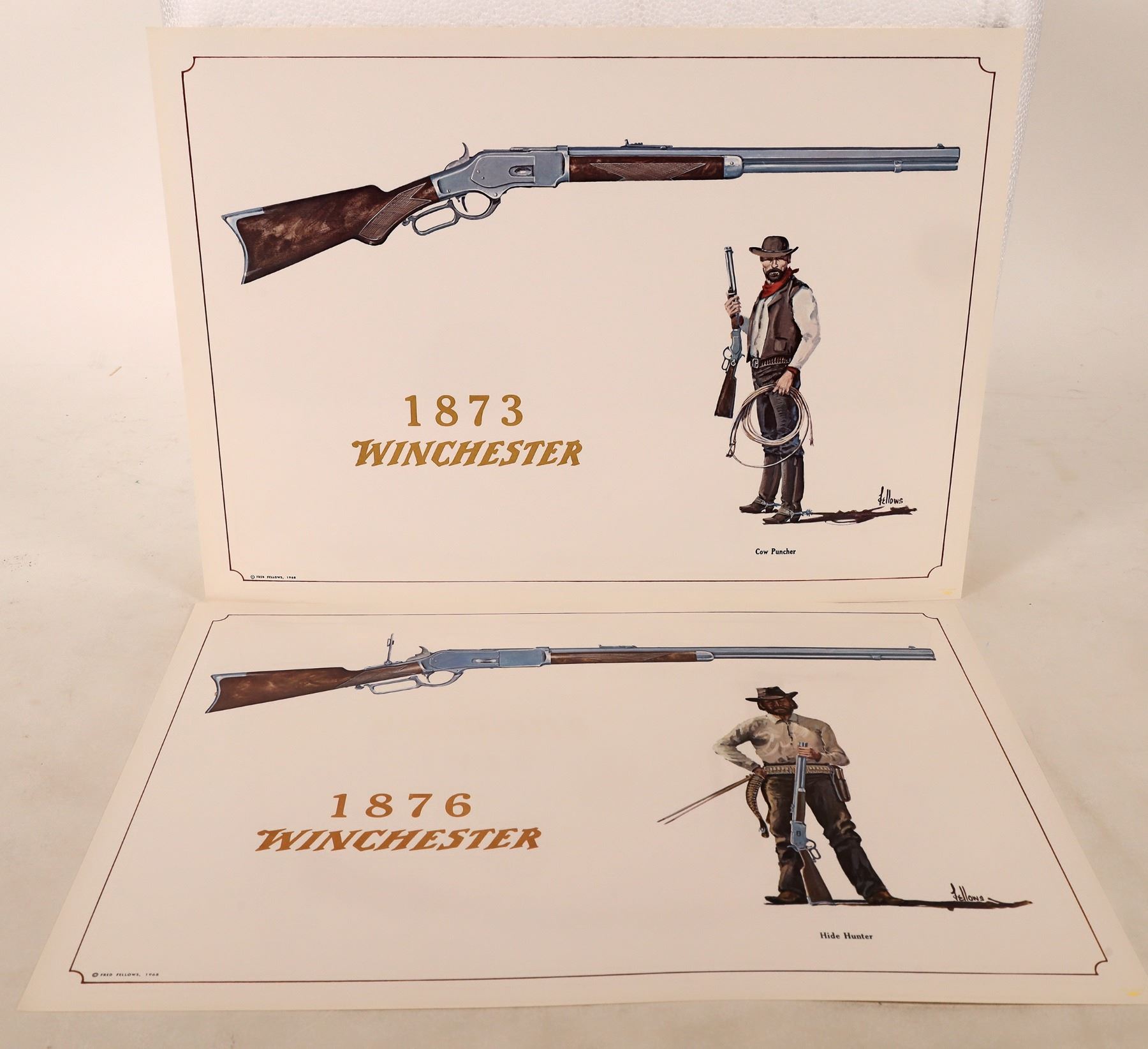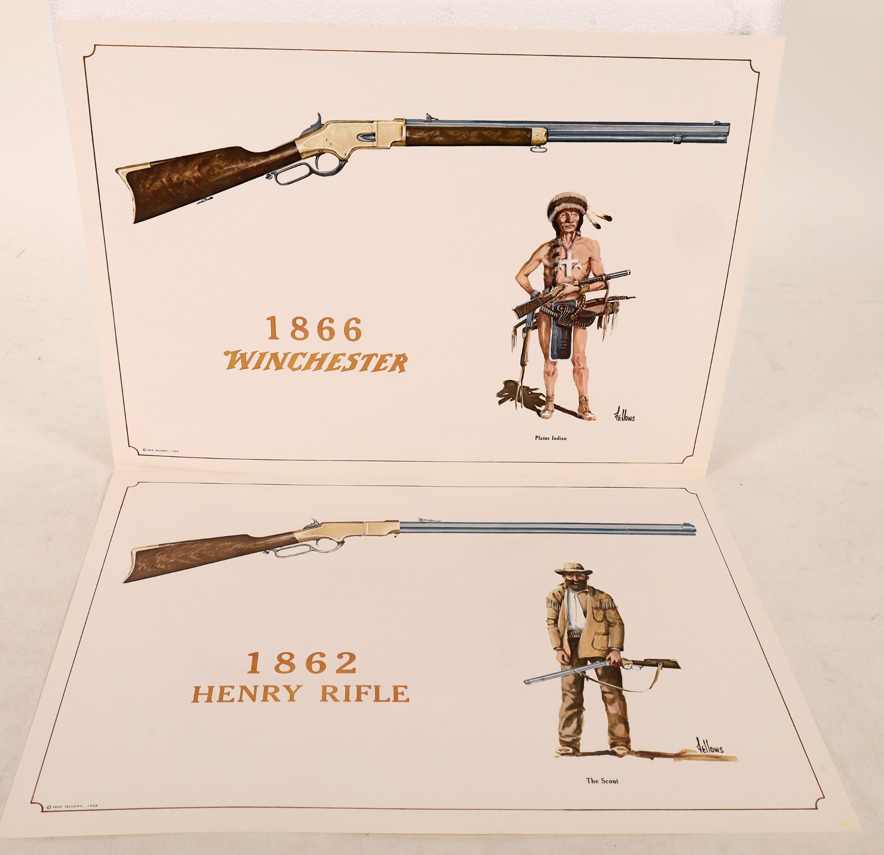 Issued by the Department of the Interior, under director Charles D. Walcott in 1896. 18 x 22 inch folio with several pages of description of the geology of the Yellowstone National Park, several pages of pictures, eight pages of colorful topographical maps. Also: 1858 "Map of the Territory of the United States from the Mississippi to the Pacific Ocean" (partial) by Gouverneur Kemble Warren, in colors, 20 x 14 inches. c1868. Another map, Dakota to Wiscnsin, 1879 "Gotha: Justus Perthes", 1:370,000; Five pieces of miscellaneous artwork: sketches of Roman ruins and cherubs. Undated color map of the Pacific Northwest, 12 x 10 inches. "Winchester on the Frontier" a portfolio of nine winchester paingtings by Montana artist Fred Fellows, in original folder with personal letter from 1970 from Fellows to a Pote Morrow. Prints are 15 x 11 inches. Wyoming 1896