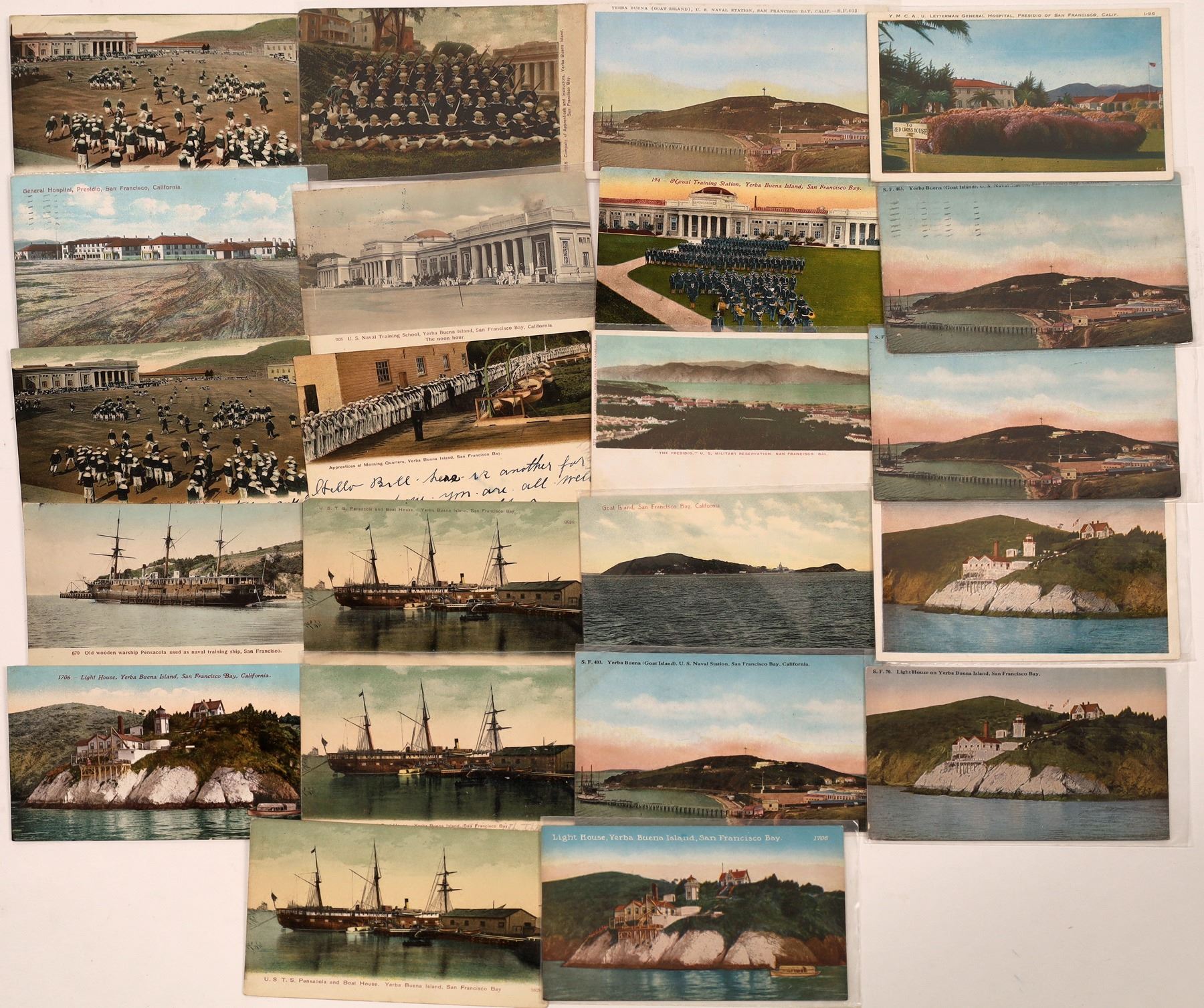 Lot of 22. Includes eight 1905-1911 Naval cards - three are Pioneer with back for address only. Three U. S. Training Ship Pensacola. Goat Island and Light House. All color. All 1912 or earlier per postmarks (two 1917's).