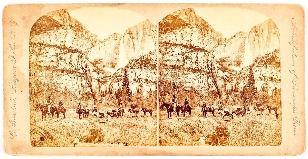 Stereoview of a party in the Yosemite valley produced by G. Bierstadt of Niagara N.Y. Inscription states: 1122 "Our Party" Yosemite Valley. 3" x 6". City: Yosemite State: California Date: Inventory# 40424