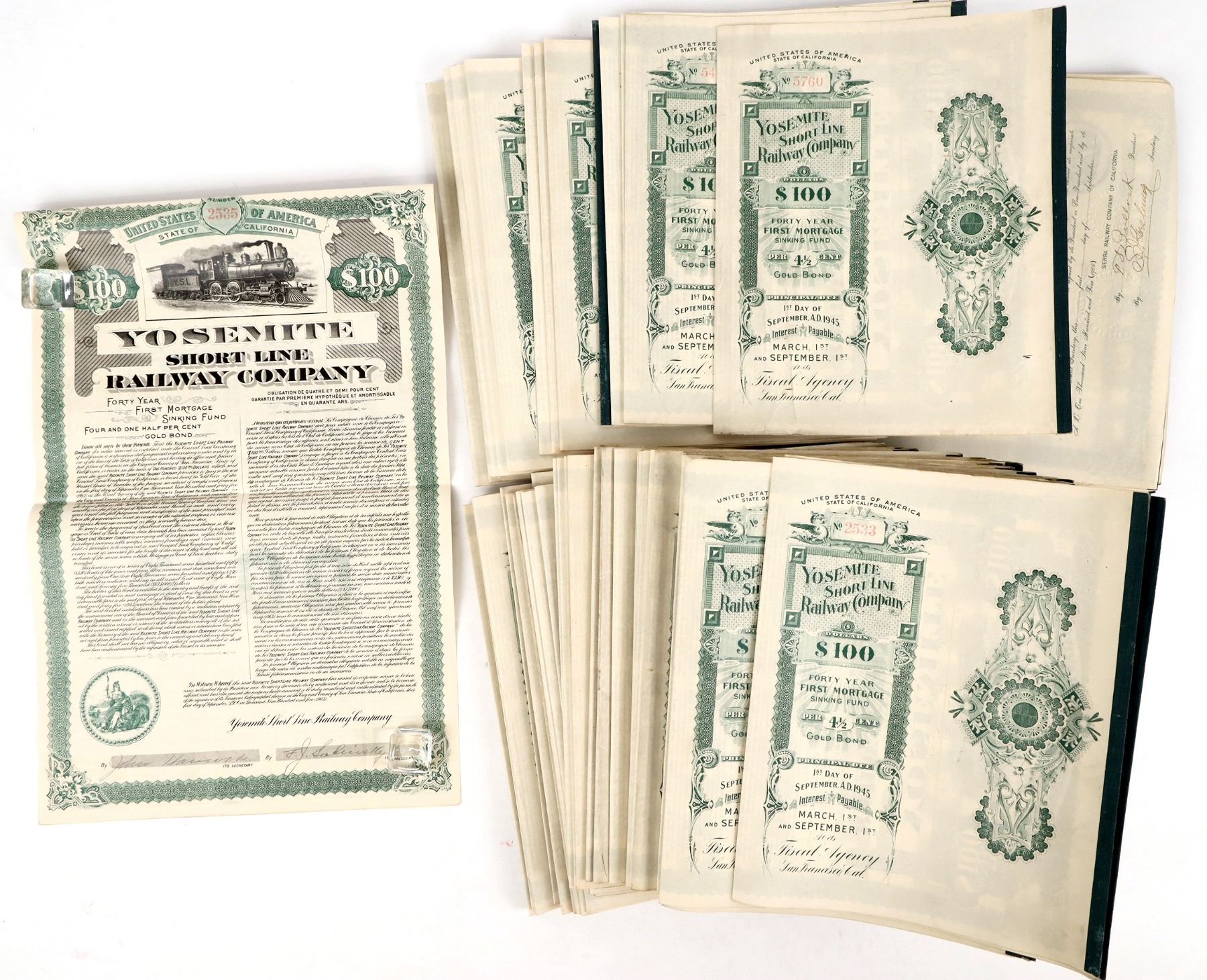 Yosemite Valley Railroad $100 Bonds About 150 c. 1905