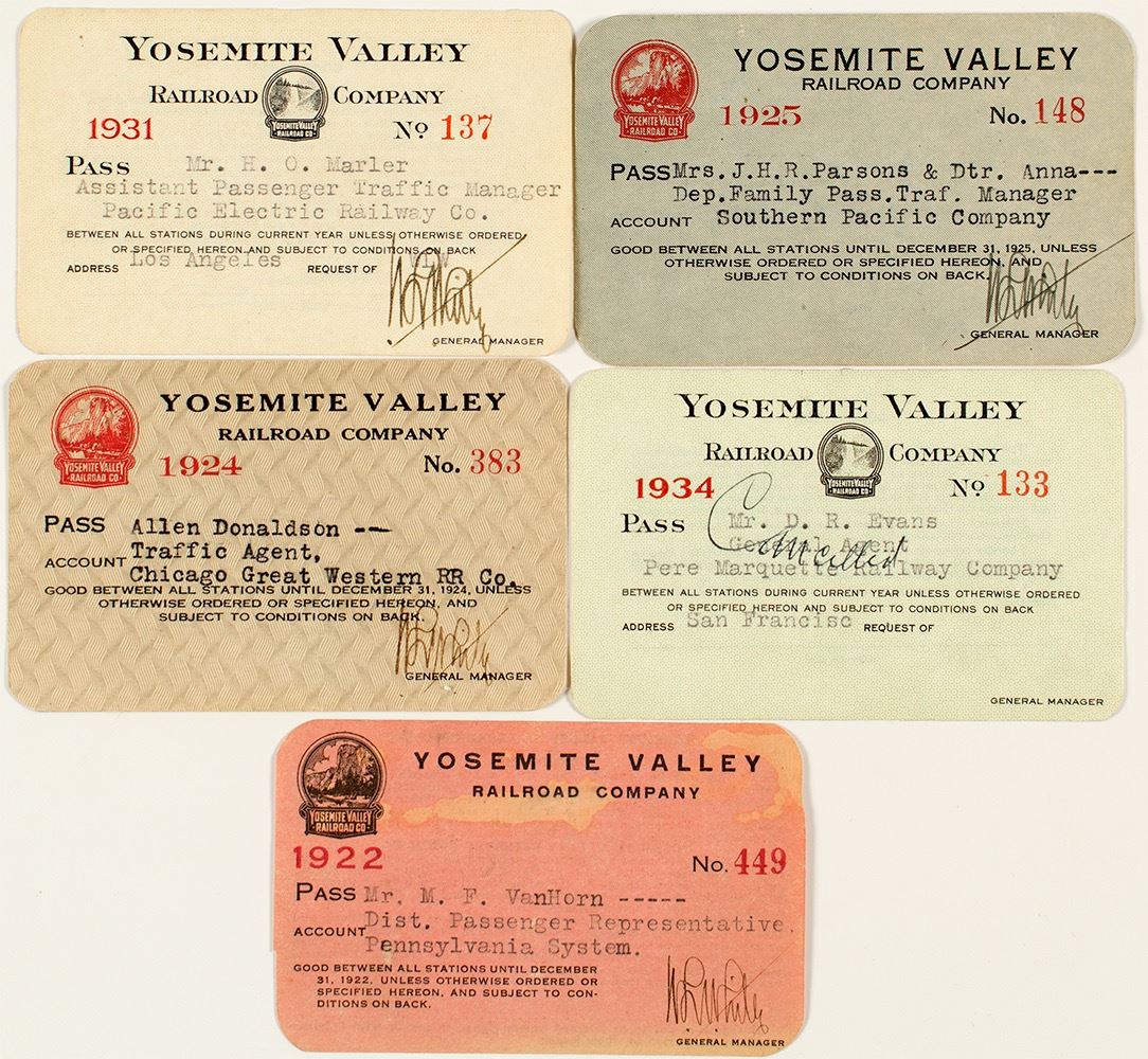 Lot of five different passes. Included: 1922, 1924, 1925, 1931, and 1934. (Prag Collection) City: Yosemite State: California, Date: Inventory# 41104