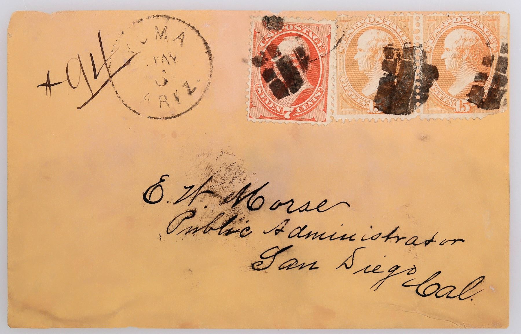 Registered mail cover front pane from Yuma, AZ to San Diego with #149 and 2x 152. 37 cents total. Some lower staining.