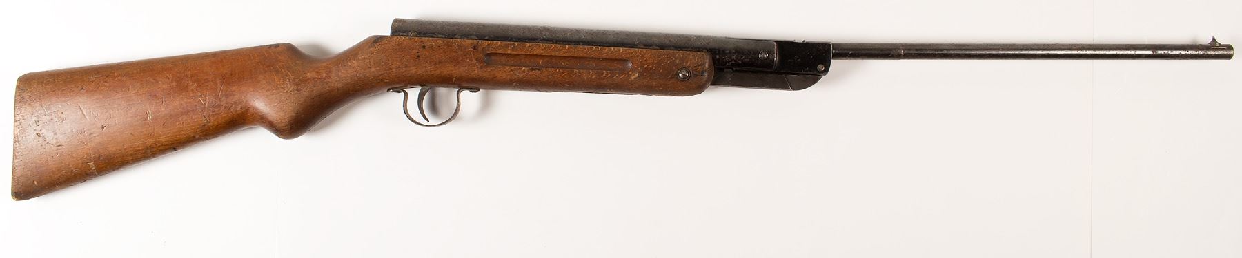 This pump action pellet gun built in Czechoslovakia S/N 0396XX is 41 1/2 in. long. The barrel is pitted with rust and the rear sight is missing. Barrel has fouled bore. State: City: Date: ID# 49669