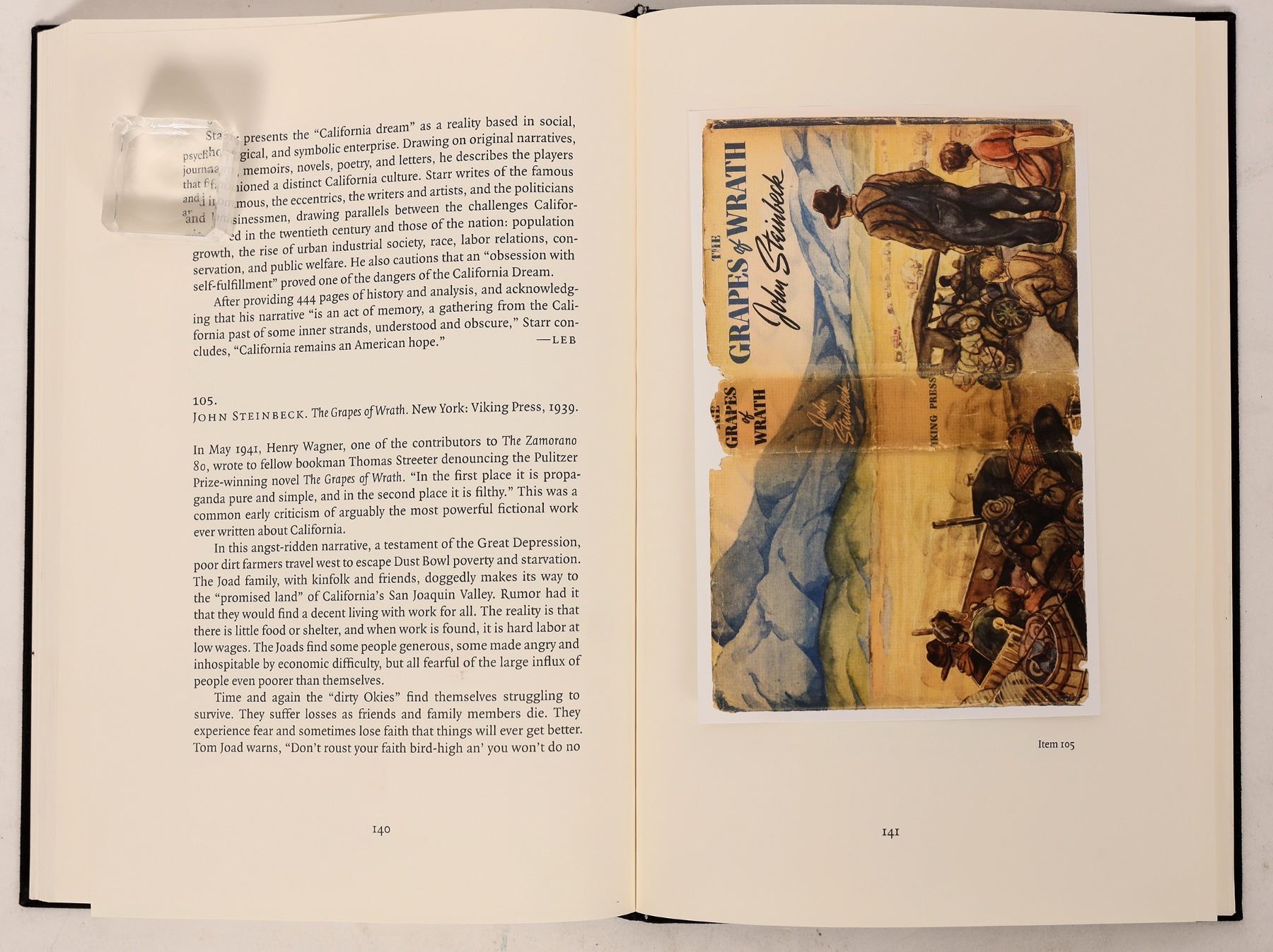 In 1945 a small group of nationally known historians and bibliographers completed their work on a small book they said represented the cornerstones of any real collection of Californiana. These men were members of the Zamorano Club and their book was the Zamorano 80. Much of the original Zamorano 80 dealt with the period in California's history up to about 1870. Included in this lot of two are: 1. The Zamorano 80 Revisited, a Collector's Update of a Classic Work, Gordon J. Van De Water, 2010, 513 pp. 9.25 x 6 in., dust jacket, fine; and 2. The Zamorano Select, a 2010 publication by members of the Zamorano Club, featuring titles and descriptions of 120 volumes they believe will help explain how California became the dominant state in the U.S. in the 20th and 21st centuries. Limited edition, 350 copies, with illustrations, 169 pp., 9 x 6 in, fine.