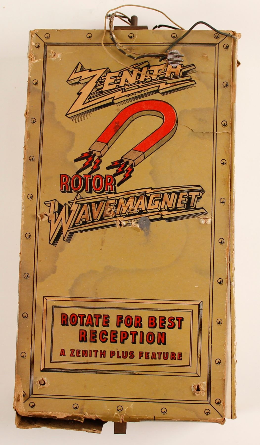 Old style radio or TV receiving antenna in original cardboard box. Rotate for best reception. Box is in rough condition.