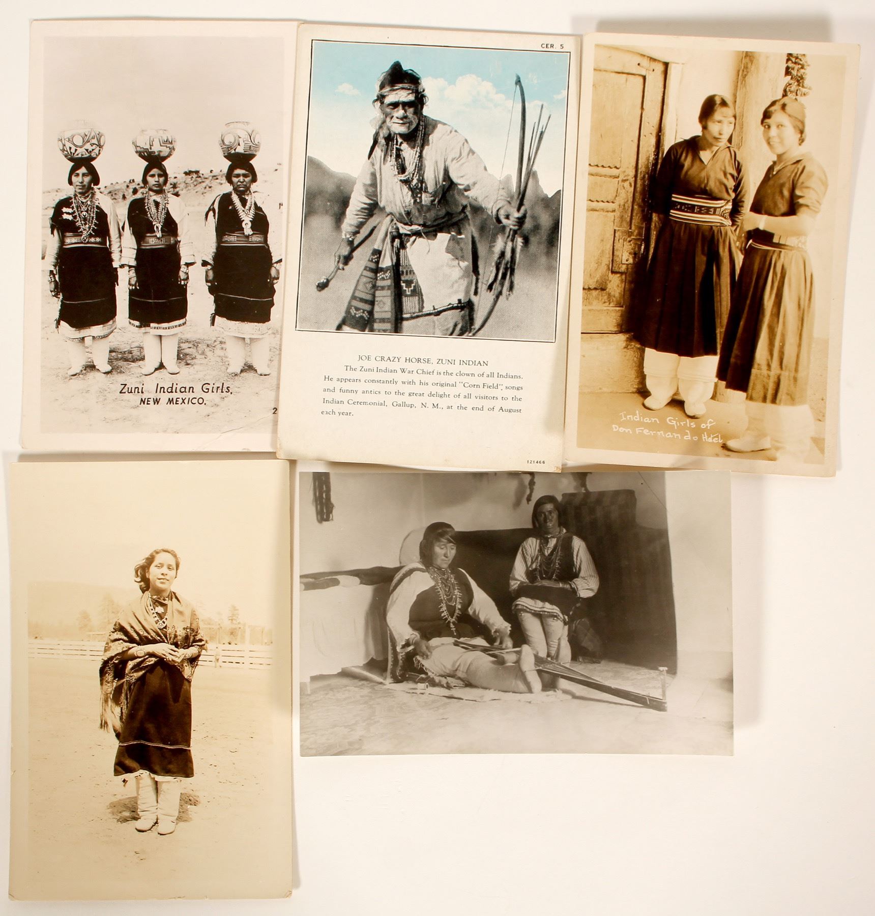 Lot of five RPCs featuring Zuni Indians of New Mexico.