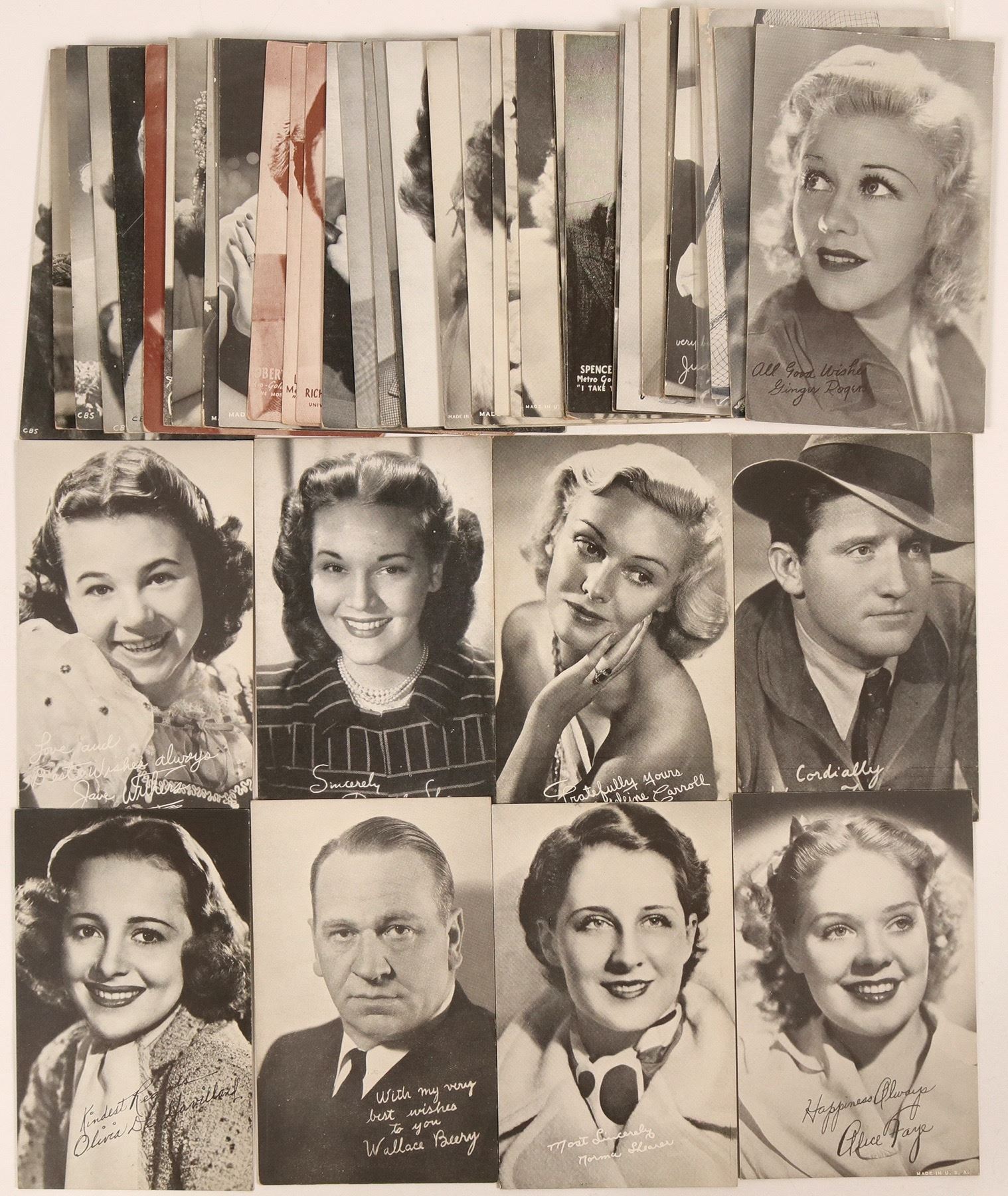 Large lot of Old Hollywood Stars c. 1933-40. Famous names include Spencer Tracy, Vivien Leigh, Jane Russell, Gene Tierney, Bing Crosby, Judy Garland, Barbara Stanwyck, Lana Turner, Debra Paget, and Ava Gardner. See photos for this exciting group.