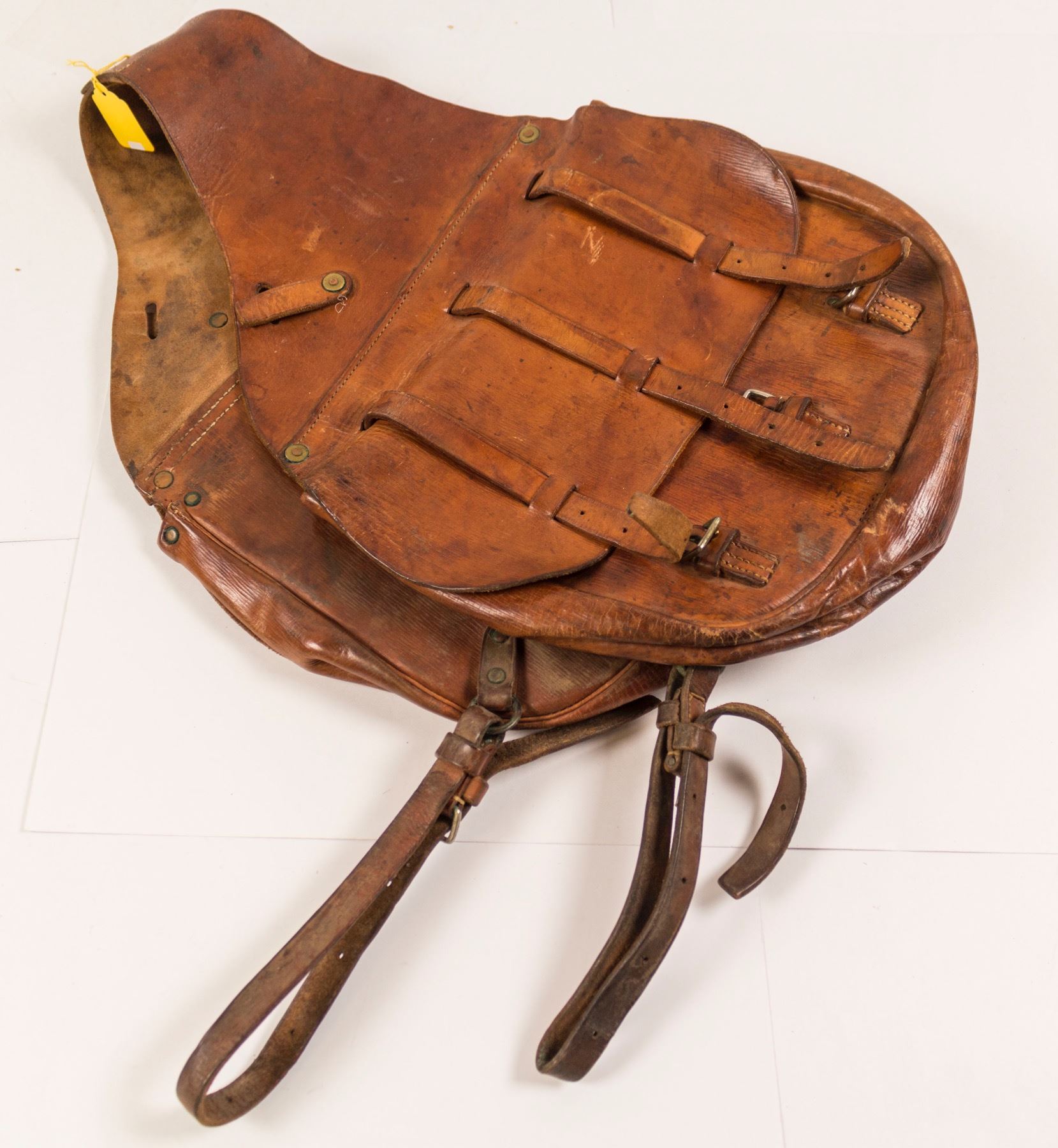 This saddle bag fits the model 1917 McClellan saddle model 1904. This is the civilian version of the military saddle bag except the civial version does not have a canvas liner and cartouches. A rare civilian version of a well established military version made likely 1904 to 1917. In excellent condition Date: City: State: HWAC# 55328
